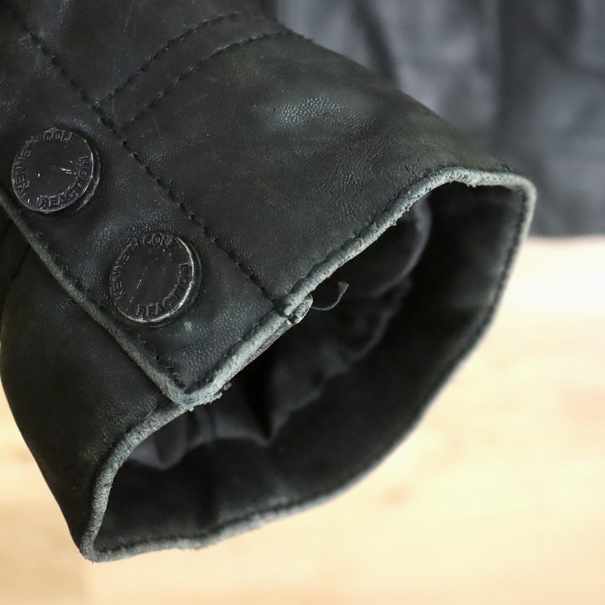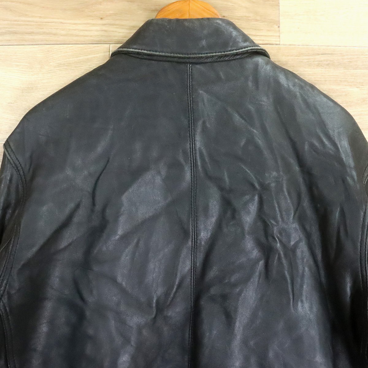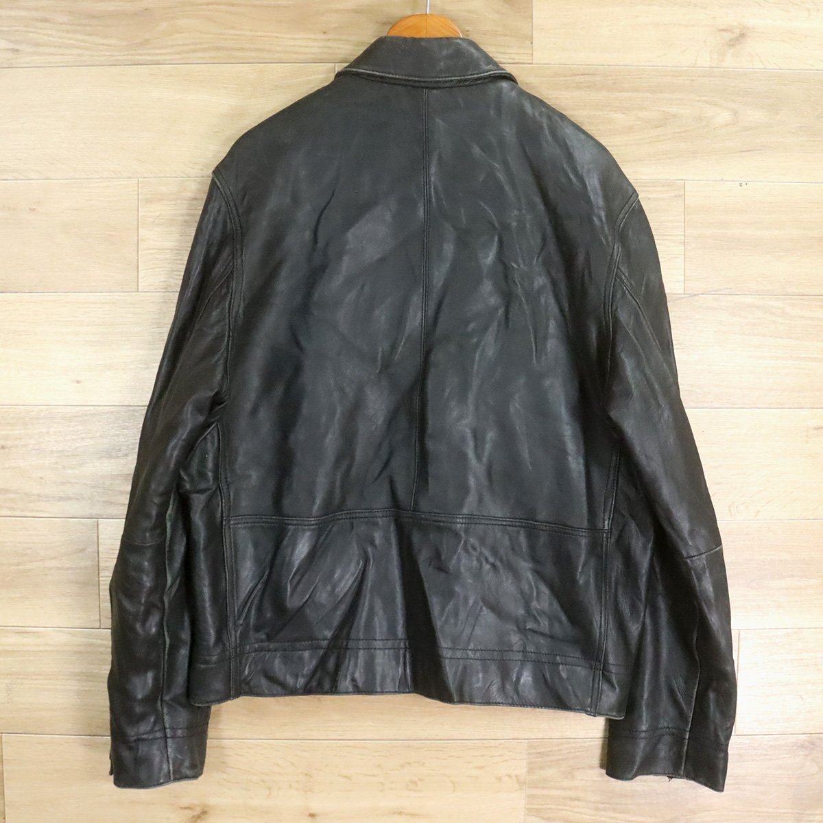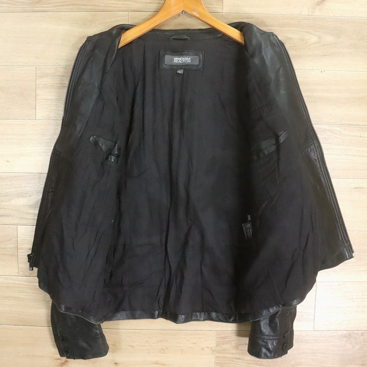 $2O/D12.2-5 KENNETH COLE REACTION レザージャケット 本革 革ジャン 皮ジャン レザーブルゾン メンズ ブラック系 Lサイズ