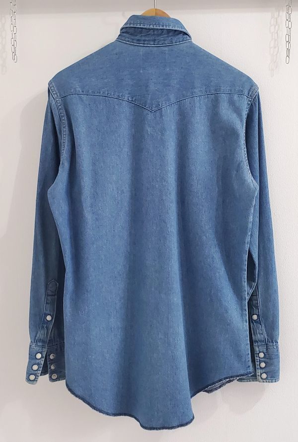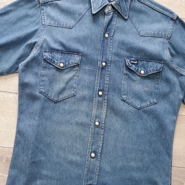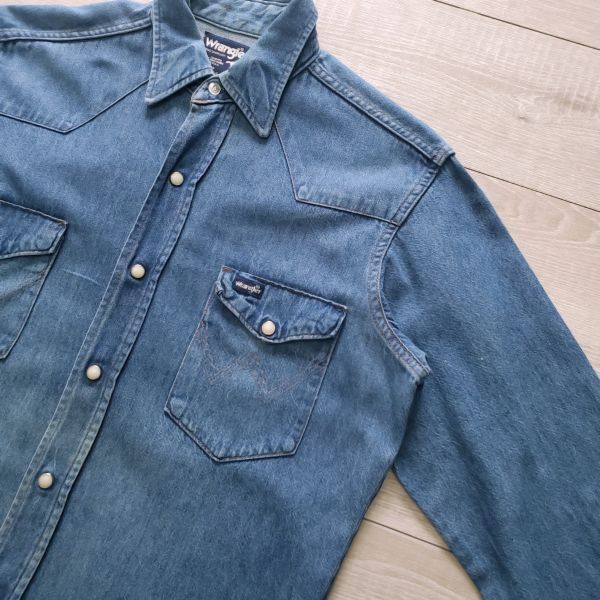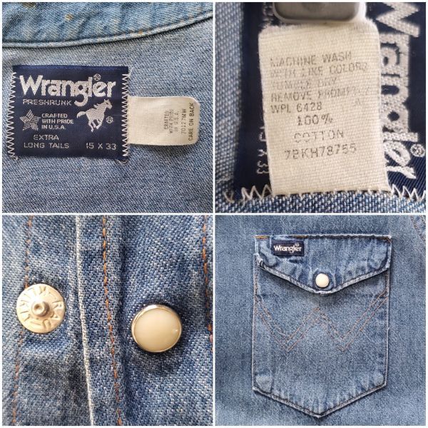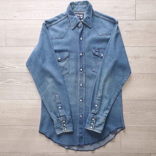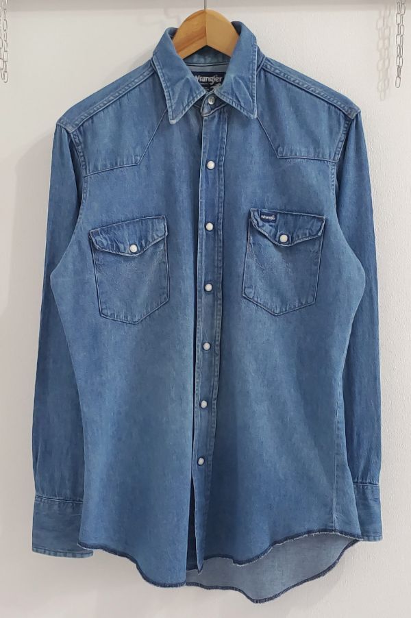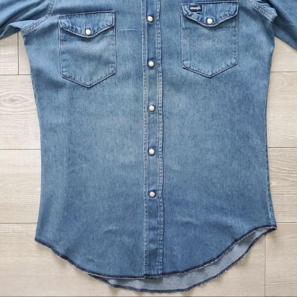 Wranglerラングラー■良品 1980s vintage USA製 70127MW 長袖 デニム ウエスタンシャツ 15×33 一般M相当 ダンガリー カウボーイ No3