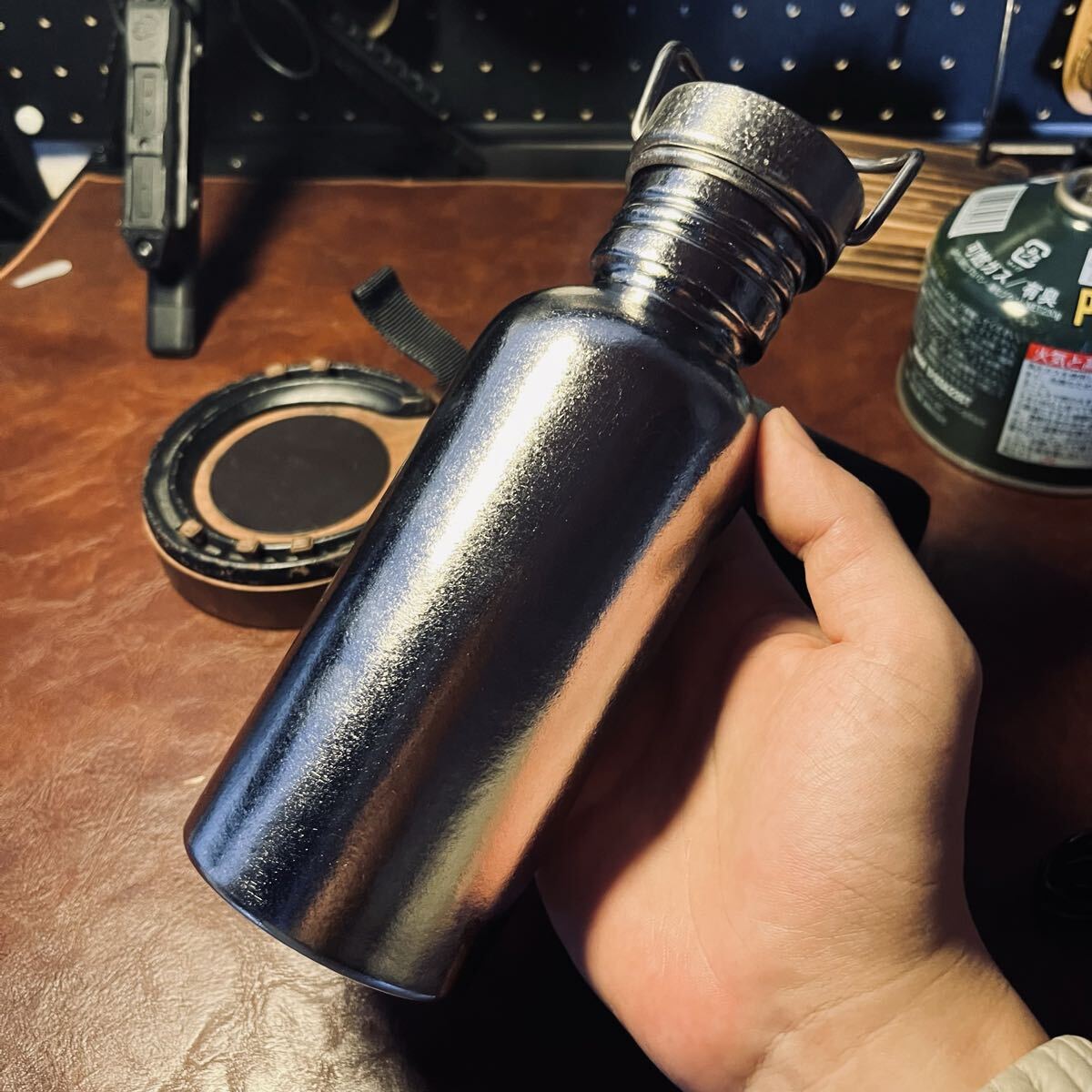 純チタン製 アウトドアボトル 500ml 超軽量160g 耐食性抜群 キャンプ 登山 ハイキング 携帯しやすい 専用保護カバー付き 7×19cm