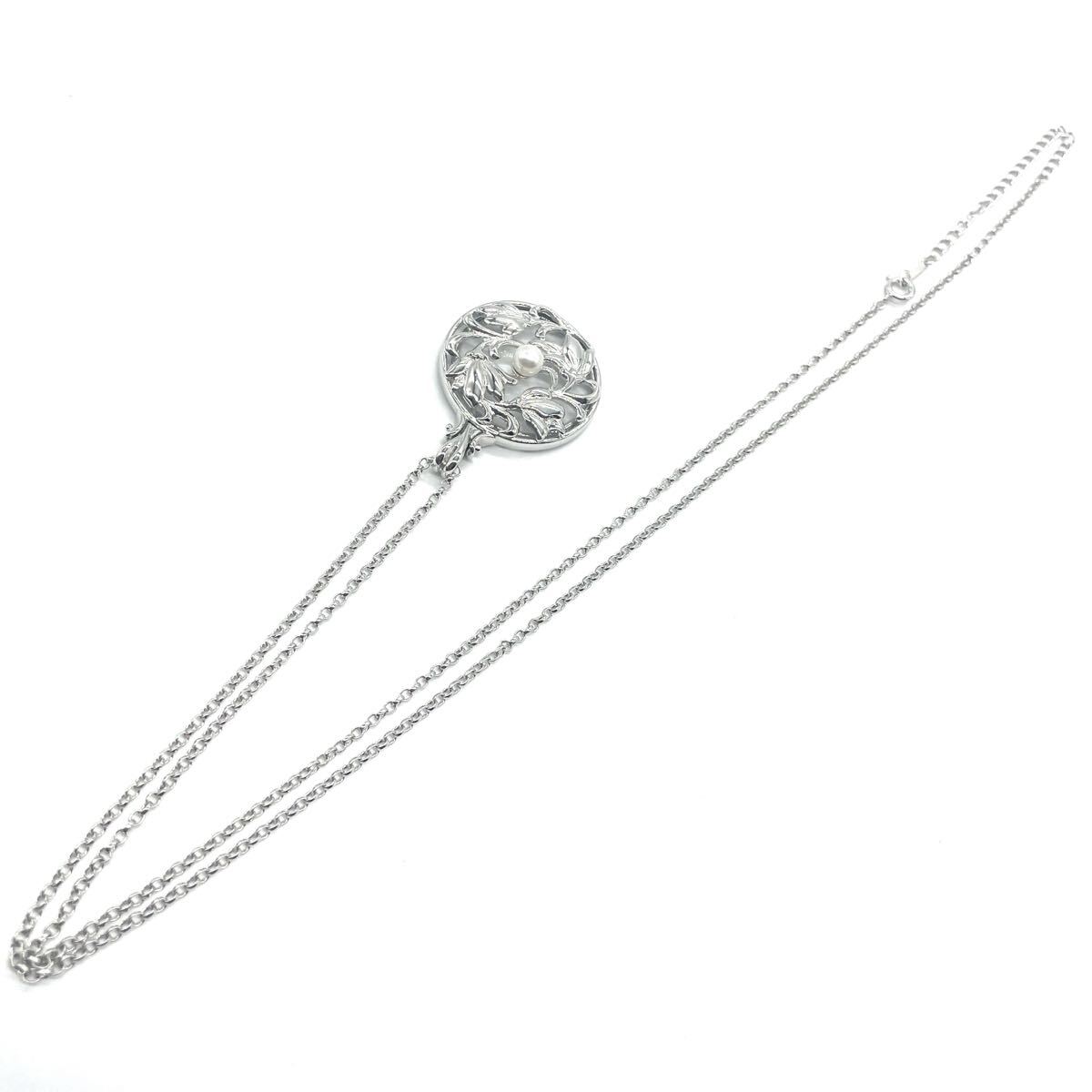 TASAKI 田崎真珠 アコヤパール ルーペ シルバー ロング ネックレス ペンダント ヴィンテージ アクセサリー 刻印 チェーン
