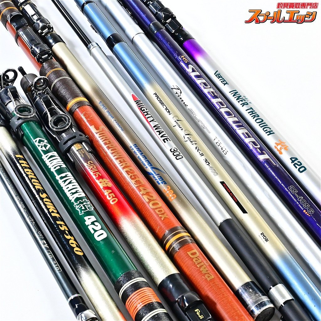 ※商品の詳細なモデル、状態、カラー等につきましては画像にてご確認ください。 ●バーテックス インナースルー投 420 ●コーシン T.Hブルーサーフ 15-360 ●WIZZ マイティーサーフEX 10-210 小傷があり、若干の使用感を感じますが、比較的キレイな状態です。 ●ダイワ サーフパワーT 25-405G ●ダイワ サーフパワー25号 420DX ●リョービ プロセクション スーパーライトSS-II 30-400 ●SZM マイティーウェーブ300 ●オオサカフィッシングタックル シリウス投450 ●メーカー不明 キングフィッシャー投420 傷や汚れがあり、使用感を感じますが、全体的にまずまずな状態です。 ●ダイワ プライムサーフ T25-425 穂先が折れ、1番節のガイドが紛失しています。以外の状態は小傷があり、若干の使用感を感じますが、比較的キレイな状態です。 ●メーカー不明 ワンダーサーフ390 4番ガイドに接着剤による補強跡があります。以外、傷や汚れがあり、使用感を感じますが、全体的にまずまずな状態です。 全て集めるまで、相当な金額がかかっております。この量での出品は、なかなか出てこないと思います。ぜひ、このチャンスにご入札をお待ちしております! 気持ちの良いお取引ができるよう、ある程度の清掃は行っております。 綺麗なもの、使用感のあるもの、傷が少ないもの、傷が多いもの、混ざっております。 おおまかではございますが、基本的な状態の確認はしております。 細かく気にしなければ、使用に問題はないと判断しておりますが、汚れているものや、劣化してしまっているもの、パーツが紛失しているもの、パーツや本体が破損しているもの、使用できないものが、混ざってしまっている可能性がございます。 上記をご理解いただきご入札をお願いします。 一枚目の写真が今回の出品のすべてとなります。分からないことはご質問ください。 その他にも1円スタートの商品を、いっぱい出品しています!1円祭り開催中です!!!ぜひ当ストアをのぞいてってください! |