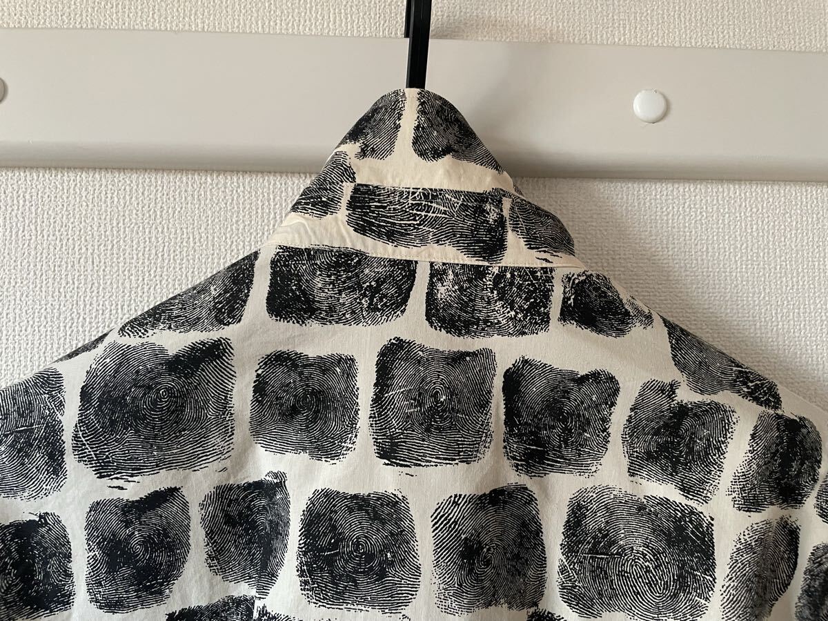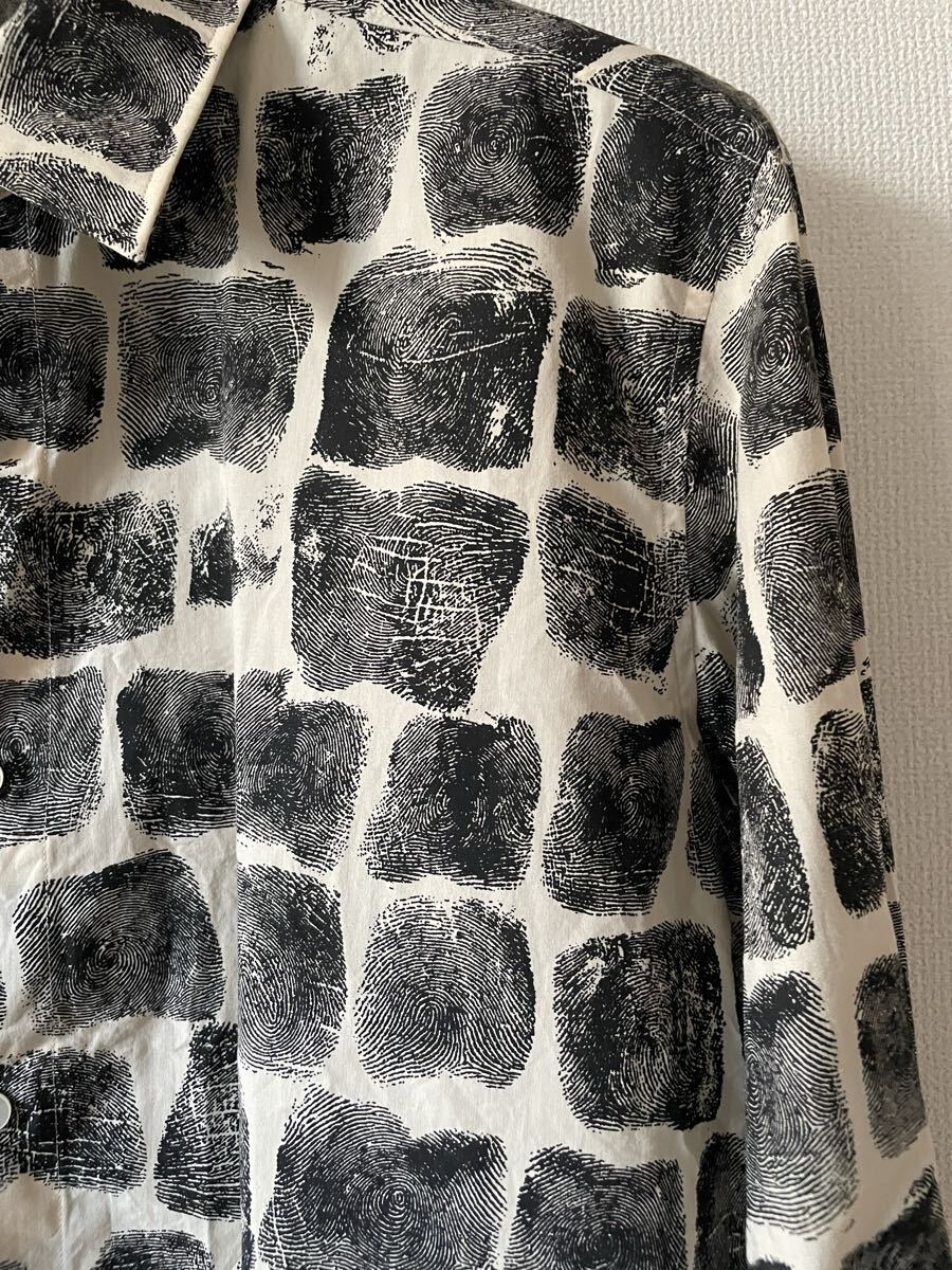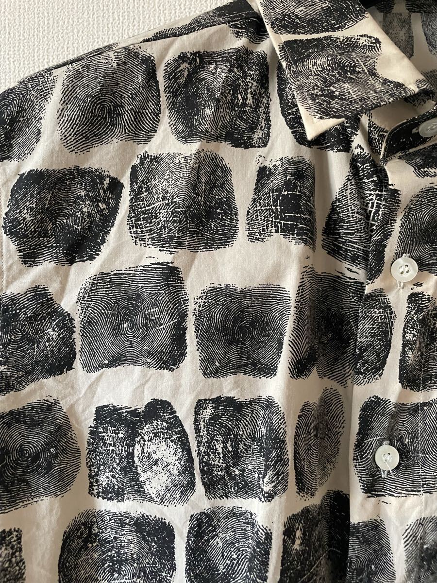 指紋の柄が全体に配された総柄カジュアルシャツ