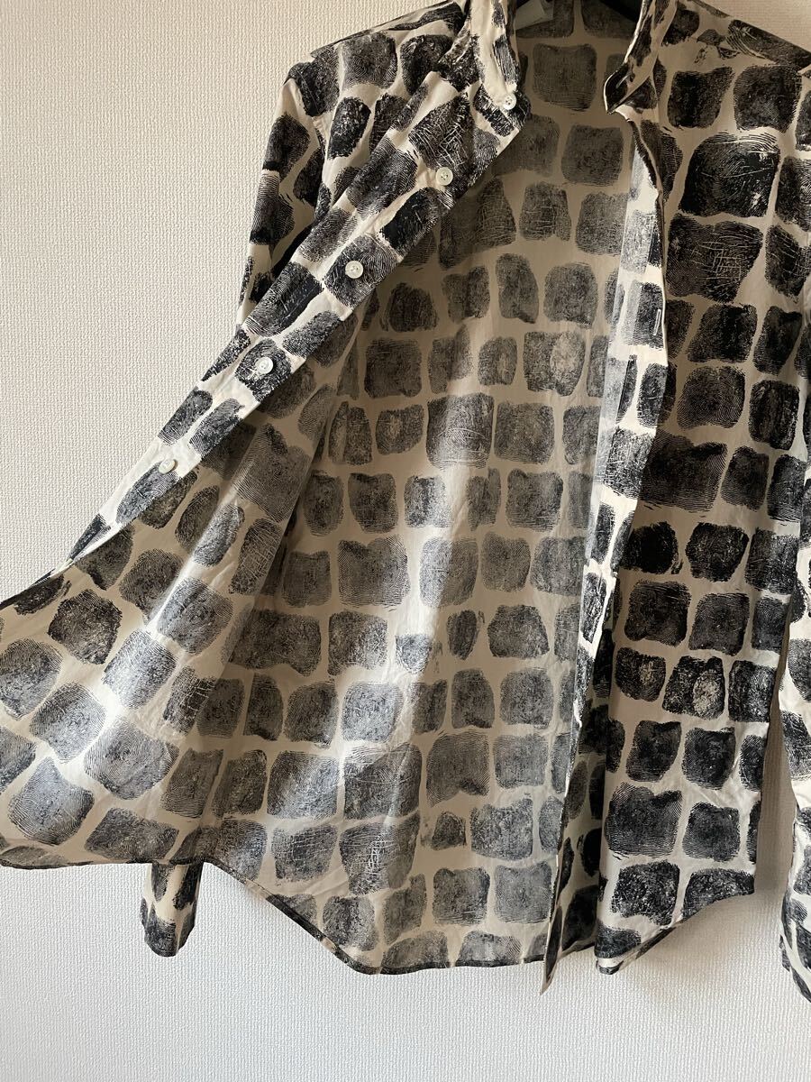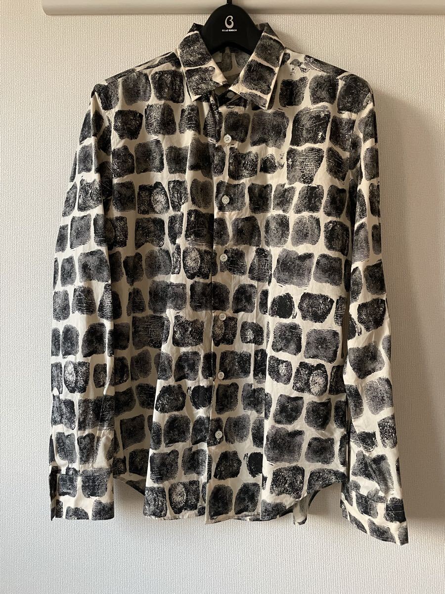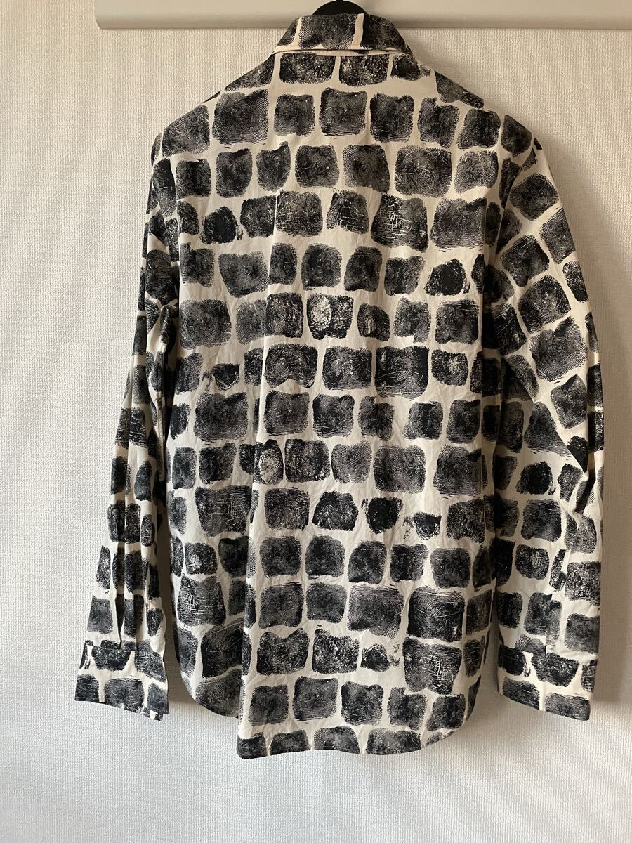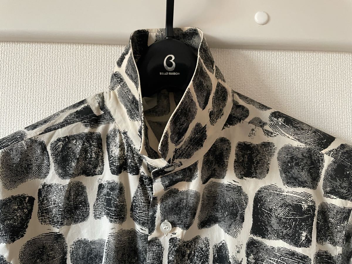 指紋の柄が全体に配された総柄カジュアルシャツ