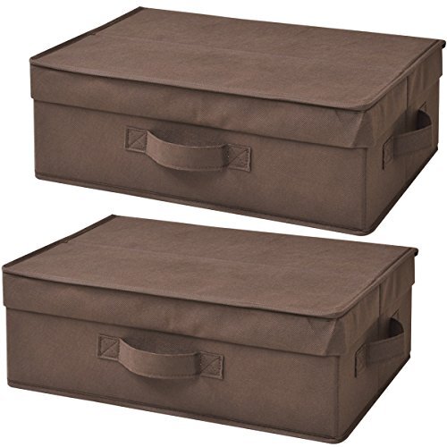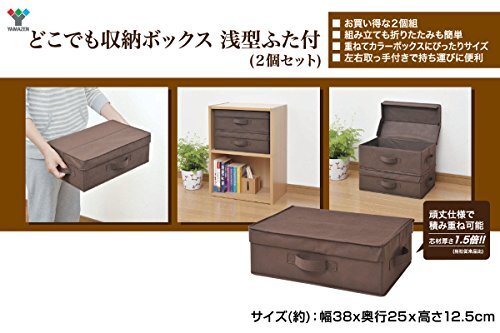 山善 どこでも収納ボックス 浅型 ふた付 2個セット ブラウン YTCF-2PAF(BR)