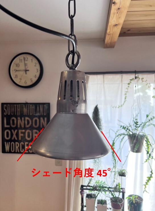 シェードの角度は45°に設定され、その傾きから放つ光は素敵な空間を演出してくれます。
