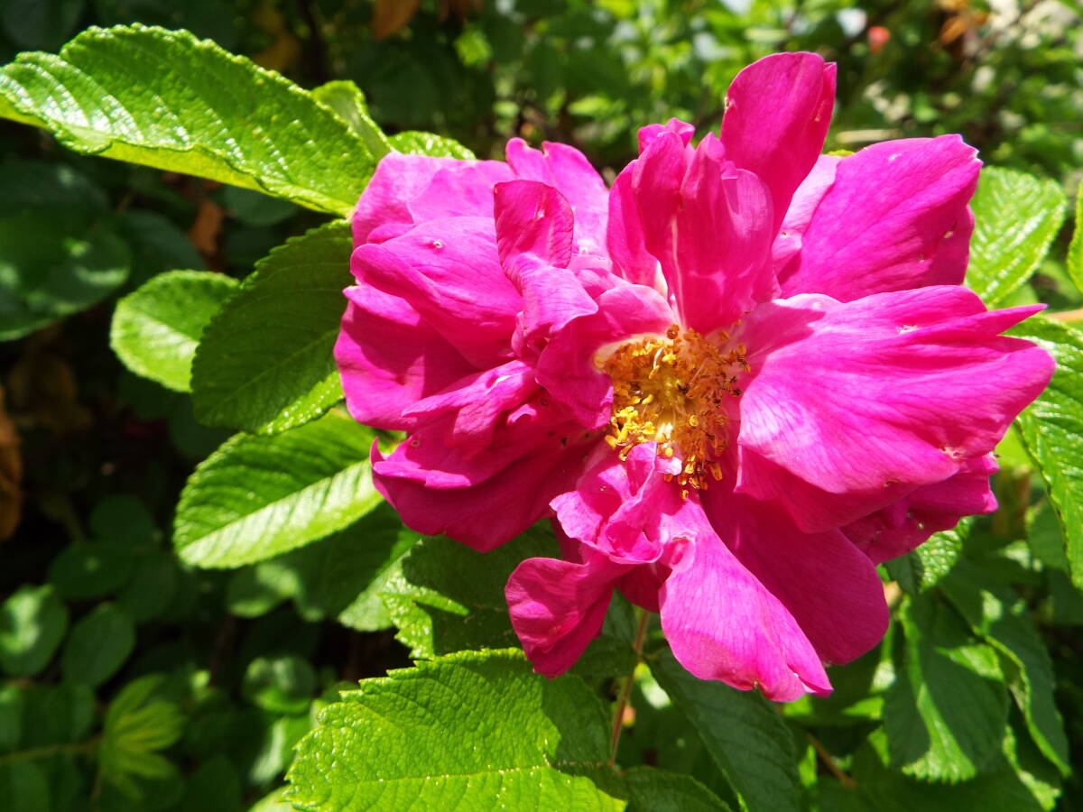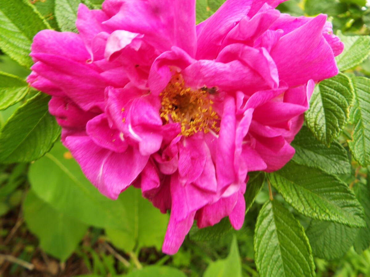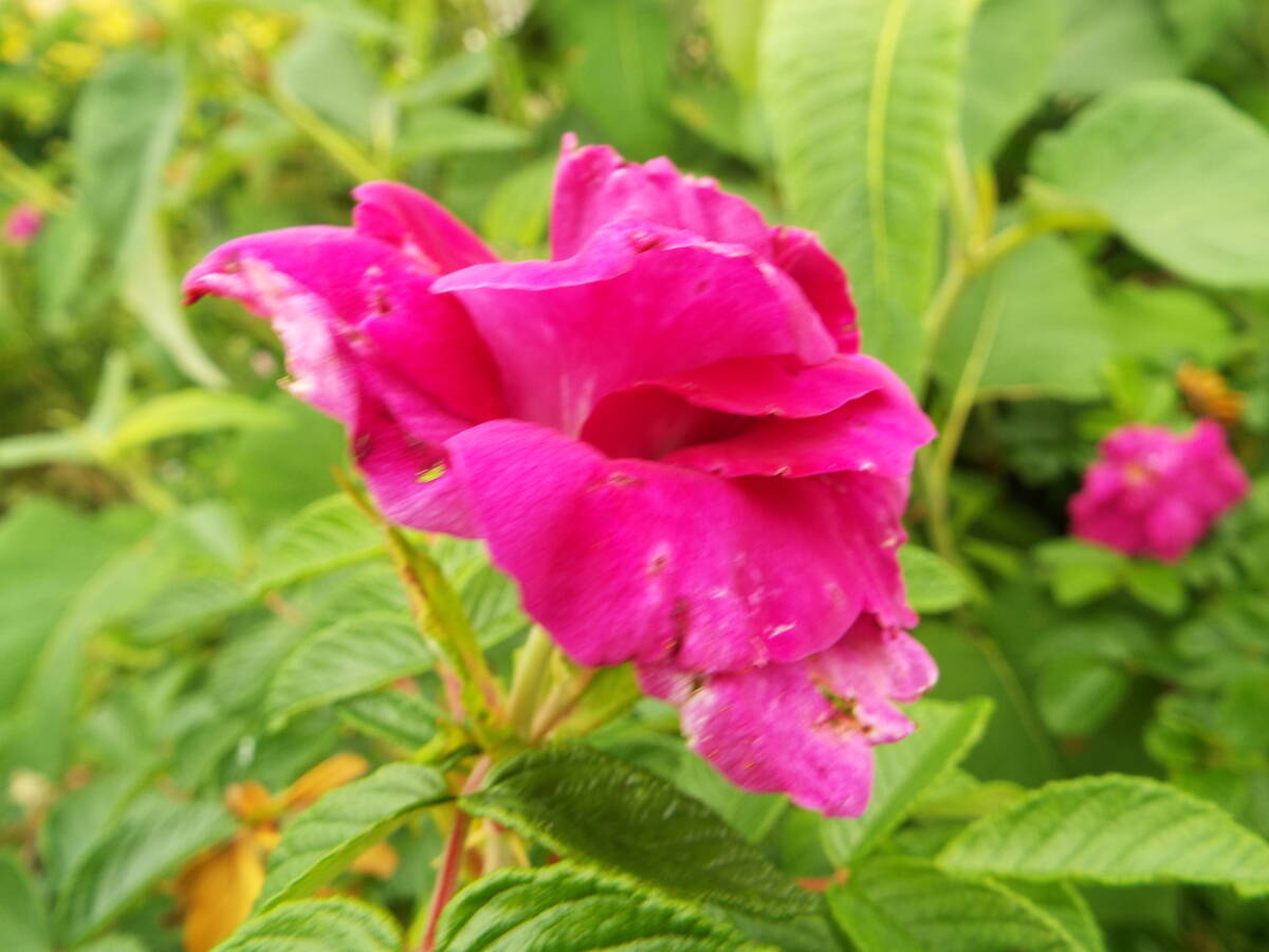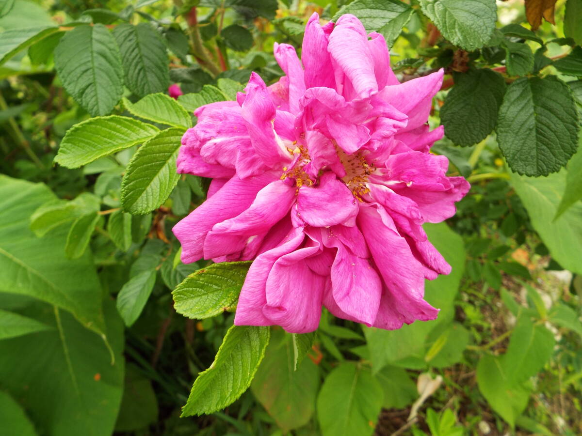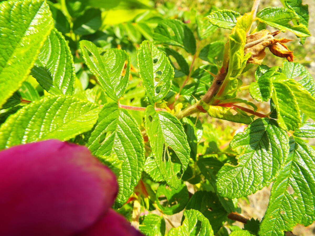 同時出品している八重咲ハマナス『ストロベリーアイスクリーム(仮称)』ローズピンク花の親木です