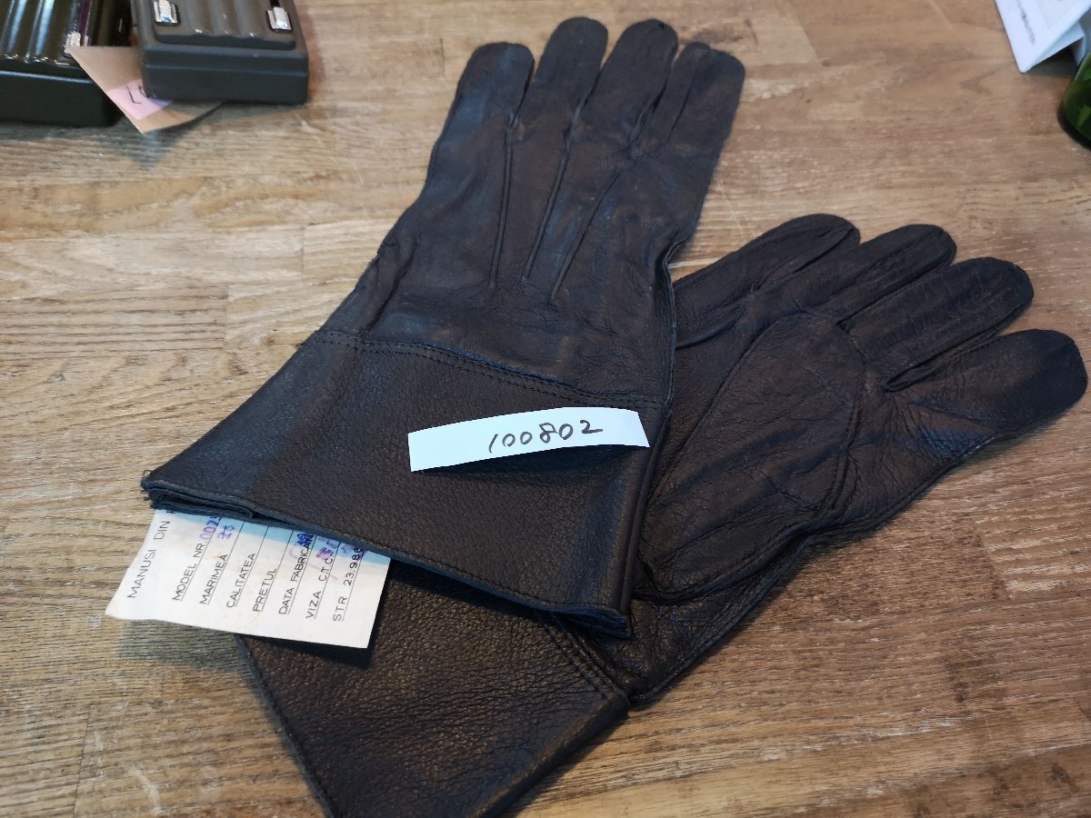 ルーマニア軍実物の裏地なしの薄手で柔らかいサイクルモーターレザーグローブです。 裏側はスエード地で手首から入り口までのカフス部分はレザー生地が二重になっています コートとの相性も良いデザインでデイリーユースとしても使いやすいアイテムです。 素材:レザー 状態:ほころびの補修あり、デッドストック(未使用品ですが長期倉庫にて保管されていた商品) サイズ10 メンズ普通サイズ。指など若干の余裕のある太さです。 クロネコネコポス便200円元払いでお送りいたします。落札価格にプラスでお願いいたします。