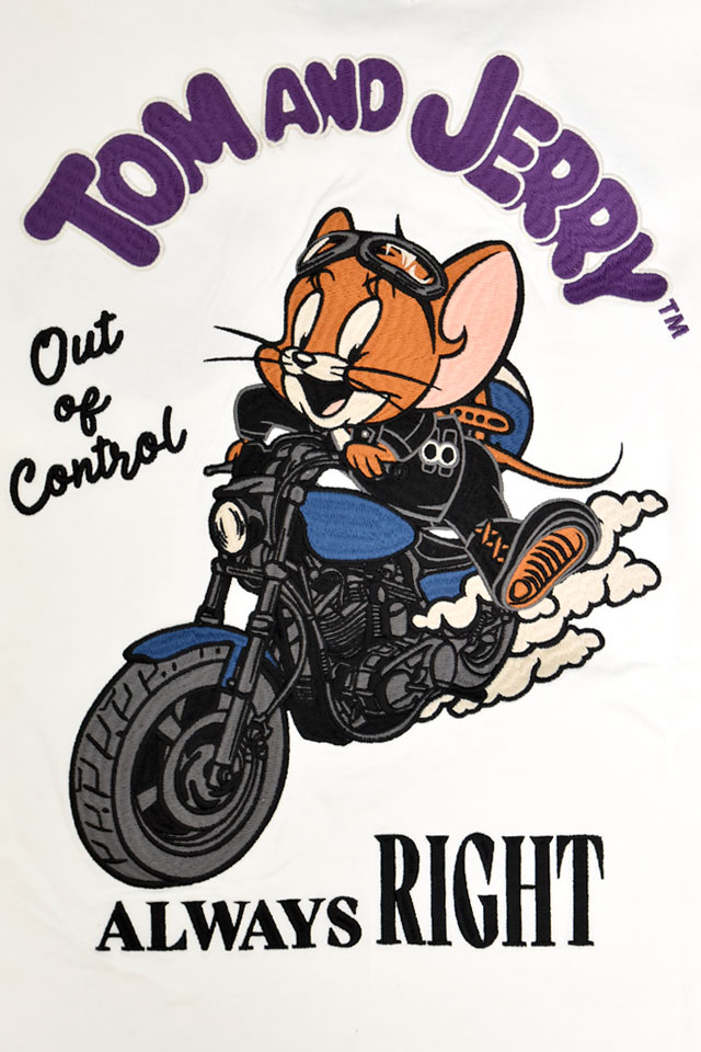 「TOM&JERRY×ネバーマインド 天竺ロングTシャツ(TJN-2602)」のご紹介です。 体が大きく凶暴だが、おっちょこちょいでどこか憎めない部分のある猫のトムと、体は小さいが頭脳明晰で、追い掛けてくるトムをことも無げにさらりとかわすネズミのジェリーのドタバタを、ナンセンスとユーモアたっぷりに描いたアニメ作品をモチーフにしました。 今回は愛車で疾走するジェリーを背中に刺繍しました。 絵柄上部のロゴは刺繍、絵柄下のロゴはプリントで表現。 フロント左胸には、ジェリーのワッペン刺繍を配置。 左袖には「TOM AND JERRY」のロゴをライン状にプリントしました。 ボディーには、ややしっかりとした刺繍に負けない強さを持ったTシャツ生地を採用。 襟元、袖口にはリブを配置しました。 カジュアルに着こなしに取り入れることの出来る、大人のキャラクターアイテムです。 | |||||||||||||||||||||||||