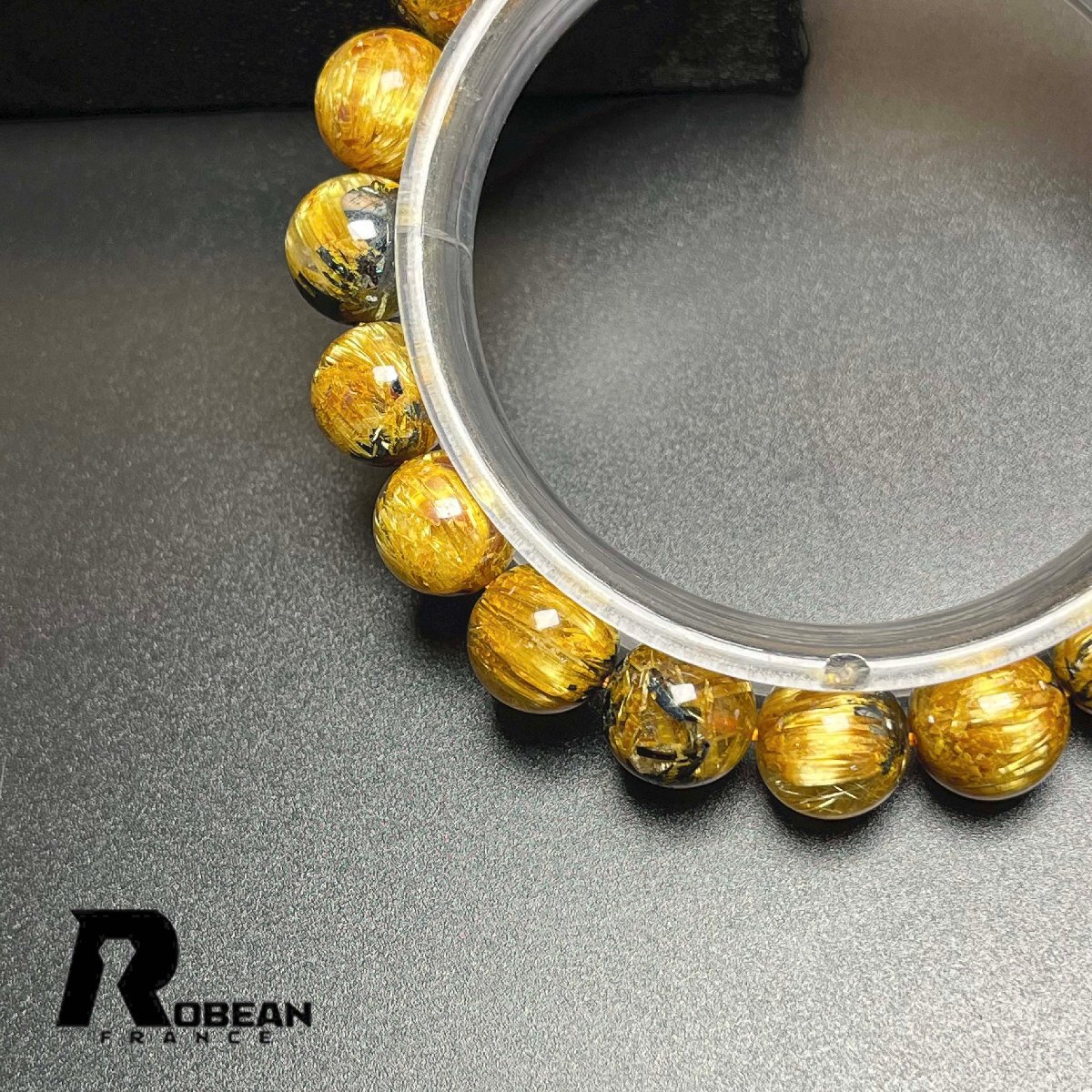 【一点限り】希少 EU製 定価47万円★ROBEAN・太陽花タイチンルチル★黄金針水晶 金運 開運 ゴールド ブレスレット パワーストーン 10-10.8mm