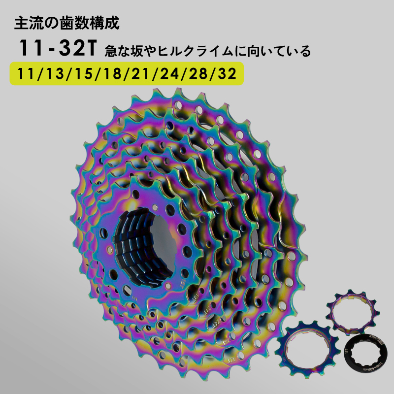 オイルスリックカラーで色でも映える自転車用スプロケット 歯数構成は11-32T 急な坂やヒルクライムでも安心。 耐久性ある高密度鋼の材質 耐摩耗性-摩擦による表面の磨り減りを抑えることが可能です。 ロードバイクやクロスバイクなどに最適です。 材質高密度鋼 仕様8スピード(8速) 歯数11-32T (11/13/15/18/21/24/28/32T) 正味重量約377 g 適用車種ロードバイク向け カラーオイルスリック ご注意 ・商品は入荷によりキズがある場合があります。 ・保証対象外になりますのでご了承お願い致します。 ・ディスプレイ環境により実物と色が異なる場合が有ります。 ・入荷時期により予告無く一部仕様変更する場合が有ります。 | |