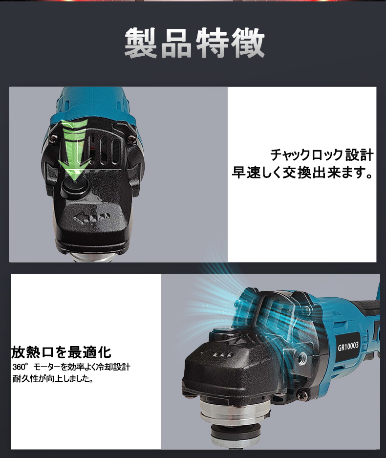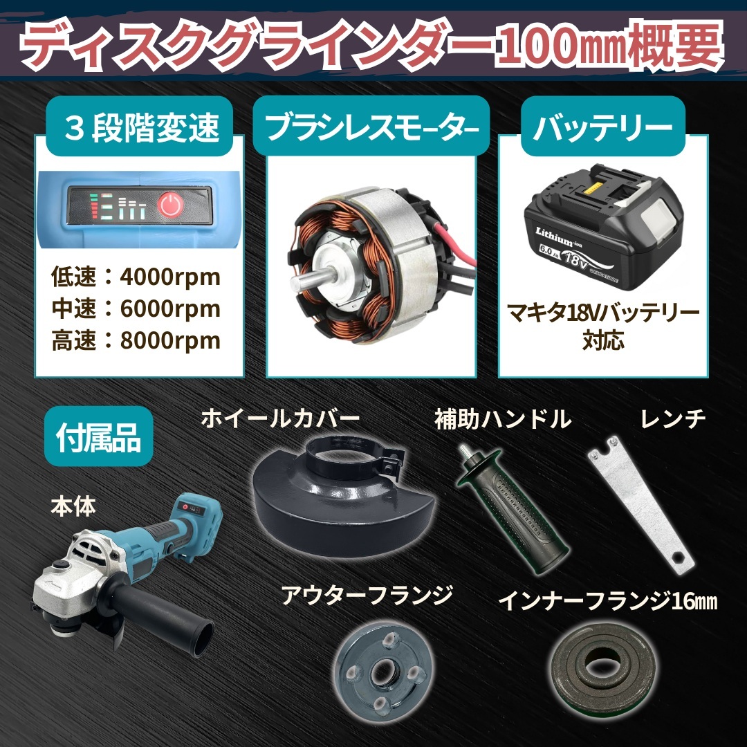 (C) マキタ makita 互換 グラインダー 100mm 充電式 18v 14.4v 研磨機 コードレス ブラシレス ディスクグラインダー サンダー