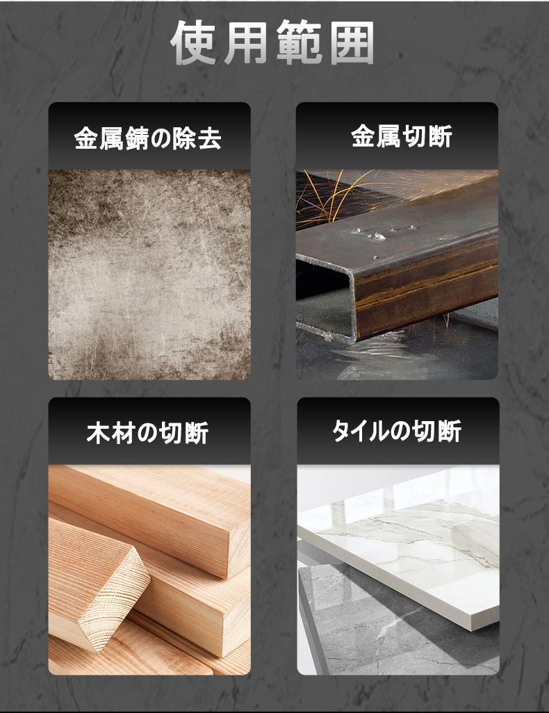【切断機能】ガーデニングでの素材切断や、銅管引込ポール・水道管の切断や、鋼研削、錆び・塗装落、効率の良い作業が可能です。