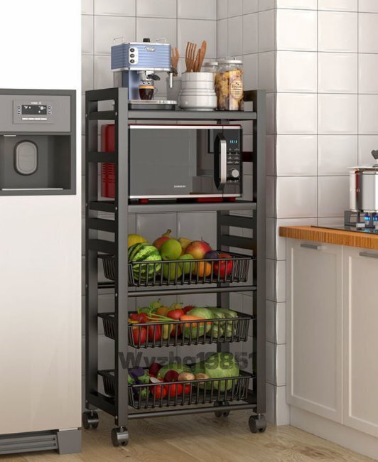 多層キッチンラックプーリ厚引き式ラック電子レンジオーブンラック多機能野菜バスケット