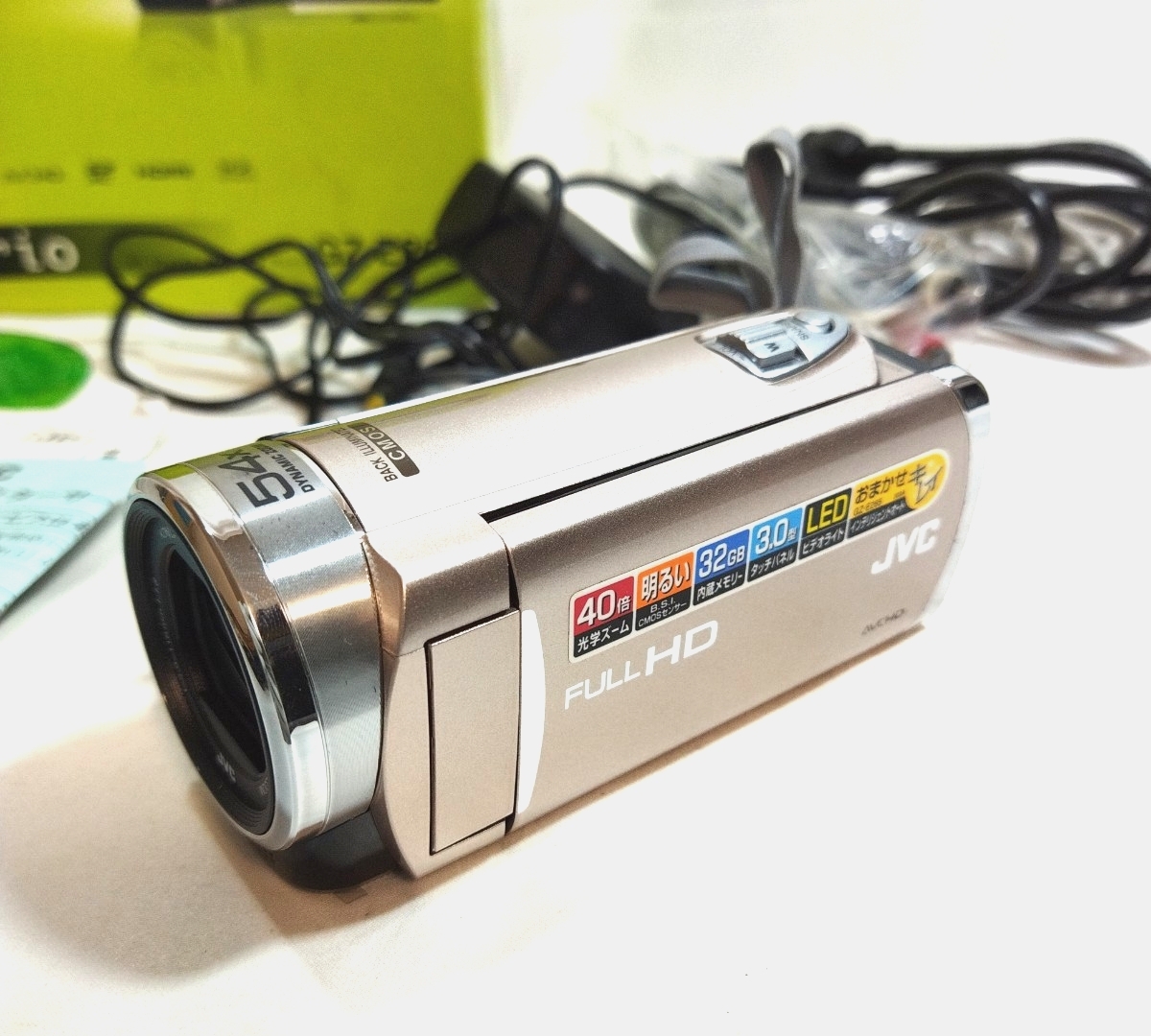【動作OK】JVC GZ-E265-N Everio JVCケンウッド エブリオ ハイビジョン ビデオ カメラ ハンディカム 箱 付属品付き_0JL_C1114-J016