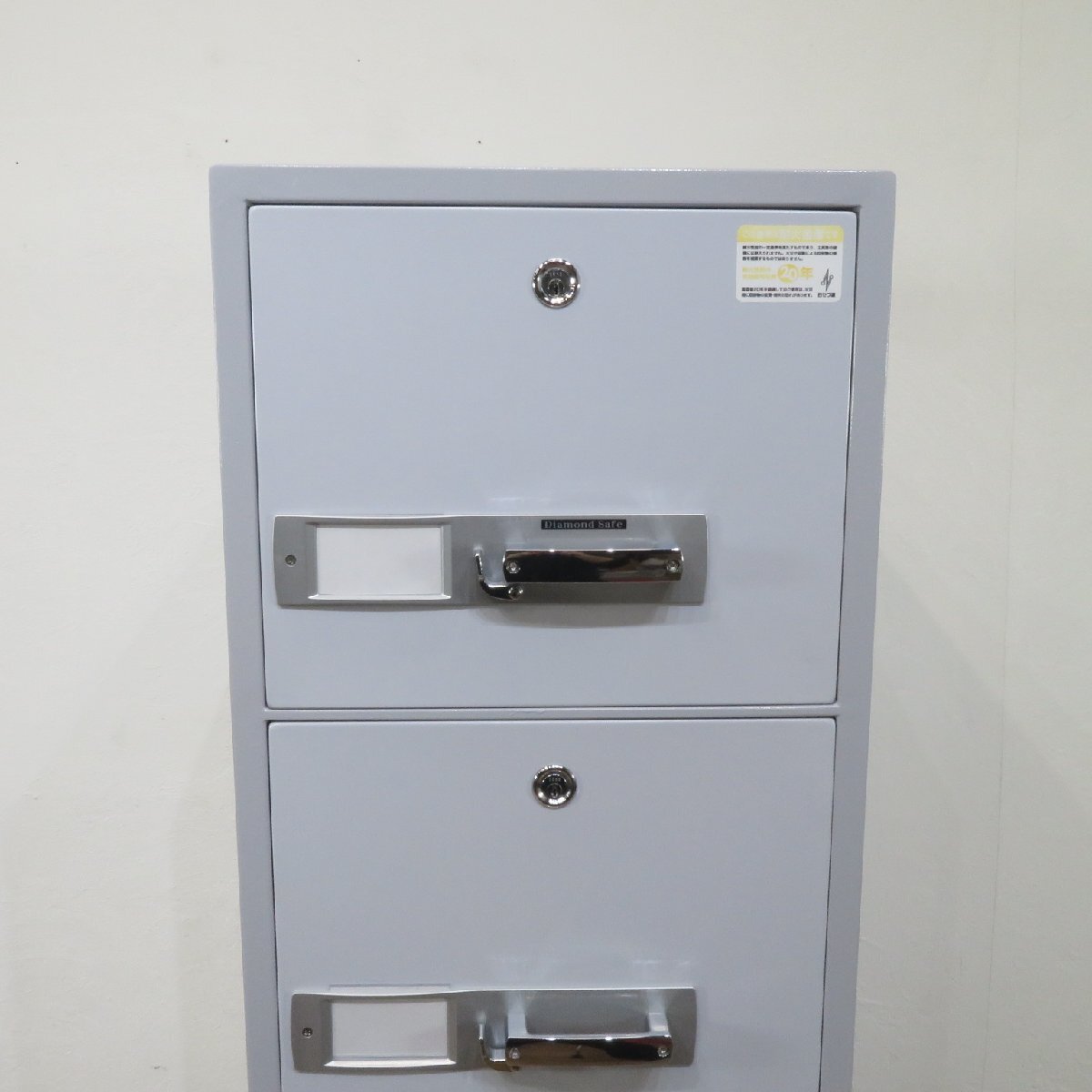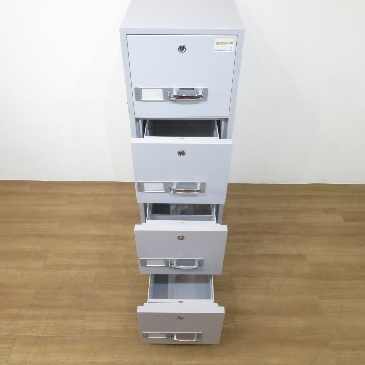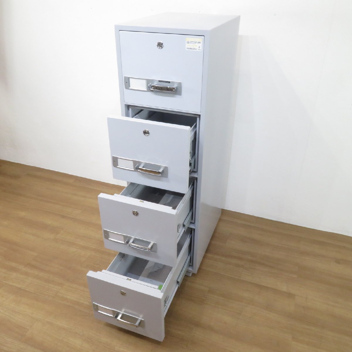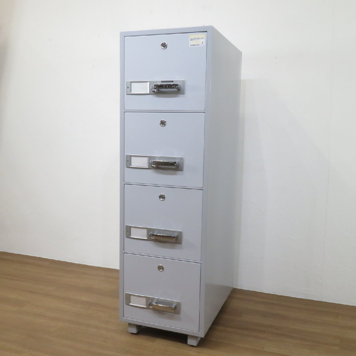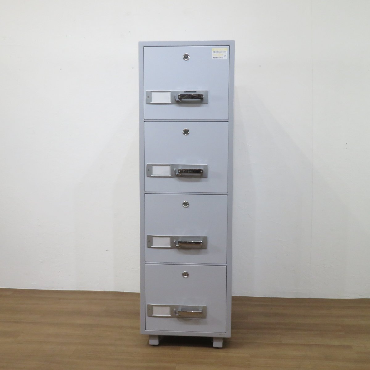 ダイヤセーフ(Diamond Safe)製の耐火キャビネットです。 4段引き出し構造となっており、重要書類・機密資料などを保管する金庫として最適です。 一定時間の耐火性能があるので災害時にも安心の設計です。 オフィスのセキュリティ面の強化にぜひご活用ください。 ※配送設置の場合は別途搬入経路を細かくヒヤリングさせていただき、重量物搬入作業として専門作業会社の手配が必要となります。 |