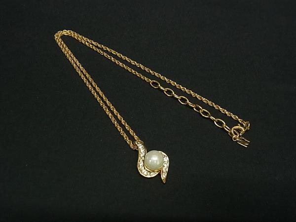 ■美品■ NINA RICCI ニナリッチ パール ラインストーン ネックレス ペンダント アクセサリー レディース ゴールド系 DG9145