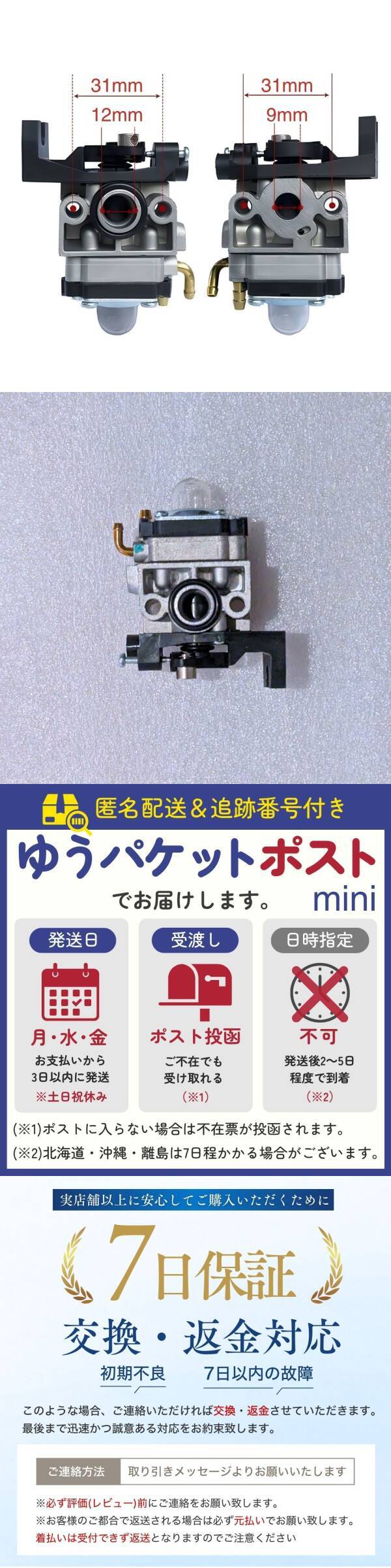 | 商品説明 | ご覧いただきありがとうございます。 ●商品説明 経年劣化などによる性能の低下を改善。 交換・補修用のパーツとなります。 ・エンジンのかかりが悪い ・異音がする ・燃費が悪くなった気がする ・アイドリングが不安定 ・エンジンの回転がスムーズにあがらない ・オーバーフローしている など、以上の症状が一つでもある場合はキャブレターの経年劣化の可能性があります。 キャブレターの点検・交換をご検討ください。 【参考品番】 16100-ZOH-053 16100-ZOH-825 ●商品詳細 サイズ:約30mm×約40mm×約60mm 重量:約120g×1 ※取付けに関するサポートは行っておりません。取付けに不安がある方は専門業者へご依頼するようお願いいたします。 ●発送について 【ゆうパケットポストminiで発送します】 発送日 :お支払い後1〜3日以内(平日) 到着目安:発送後2〜4日程度 ※商品はポストに投函されます ※遠方の方はもう少しかかる場合もございます 【配送方法の変更はできません】 ●お願い ・商品画像の転載や説明文のコピーはお止め下さい ※見つけたら通報しています ・ 海外製品のため、細かな汚れや傷がある場合があります。予めご了承ください ・即購入OK 〇初期不良は対応しますので、何かあれば「評価前に」ご連絡下さい |