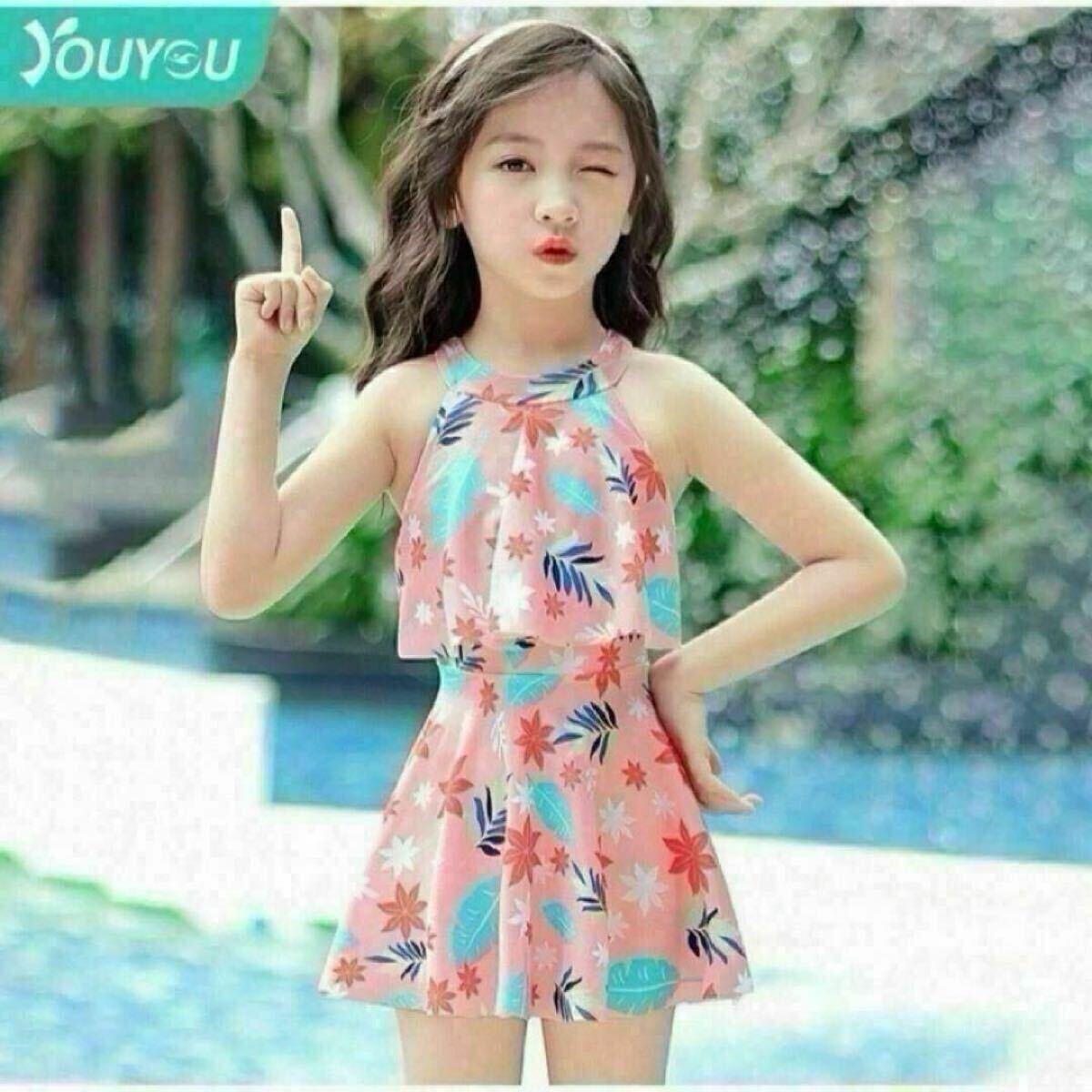 かわいい花柄のワンピース水着。上半身は2層構造になっていてカバー力抜群。人気のAラインヒラヒラスカートもおしゃれでかわいいワンピースの中はショートパンツ付き。トイレがスムーズで楽チンです。バックスタイルは紐がクロスになっていてかわいいです。(紐は調節不可ですがズレにくい仕様)ショートパンツのウエストはゴム仕様です。パンツの内部分からヒモが出ています。(1つの穴から2本紐が出ていますが蝶々結び可)柔らかい生地で通気性もあるので快適に長時間水遊びを楽しむ事ができます。