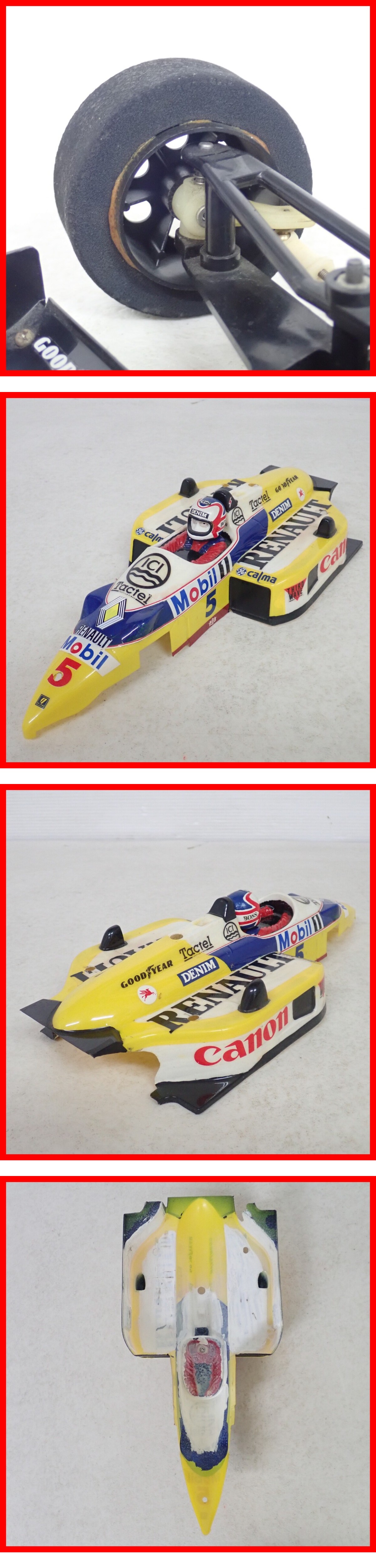 | 組立済 タミヤ 1/10 ウィリアムズ FW11B 電動RC Williams F1 ルノー RENAULT TAMIYA 動作未確認 現状品 ■こちらの商品は【現状品】のため、どの様な不具合が生じましても当店では交換・返金・返品等の対応はできません。 ■ご理解ご納得いただける方のみご入札をお願いいたします。 <搭載> ・モーター:MABUCHI MOTOR RS540SH ■ボディにスレ、キズ、汚れ、シミ、イタミ、黄ばみ、ヤケ、サビがあります。 ■シャーシにスレ、キズ、汚れ、イタミ、黄ばみ、ヤケ、サビがあります。 ■タイヤにスレ、キズ、汚れ、イタミ、シミ、ひび割れがあります。 ■本体を分解して内部の状態や細かな箇所までは検品を行っておりません。 ■カスタマイズ箇所は不明です。 ■走行/修復歴/製作時期等は不明です。 ■パーツの詳細なチェックは行っていない為、欠品・破損等がある可能性がございます。 ■上記以外は未チェックです。 ■写真のものが全てです。付属物の有無や状態については写真からご判断ください。 ■付属物については細かいチェックはしておりません。万が一、欠品があったり余計な物が入っていたとしてもご了承ください。 ■商品によりますが、発売されてから10年以上経過している中古品であることをご理解いただいた上でご入札をお願いいたします。なお、新品や美品、そのほか特記事項がある場合は別途明記します。 ■ご落札いただいた本体及び箱や取説、付属品、梱包材などは1つでも廃棄や破損をしないようにお願いいたします。 ■商品のご落札後、廃棄や破損をした場合、あるいは【修理や整備、カスタム、付属物の抜き取りやページの抜き取り/書込み等、ご落札者様の目的に応じて何らかの手が加えられた商品】に関しましては、問題があった場合でも対応や返金などの対処ができませんのでご注意ください。 |