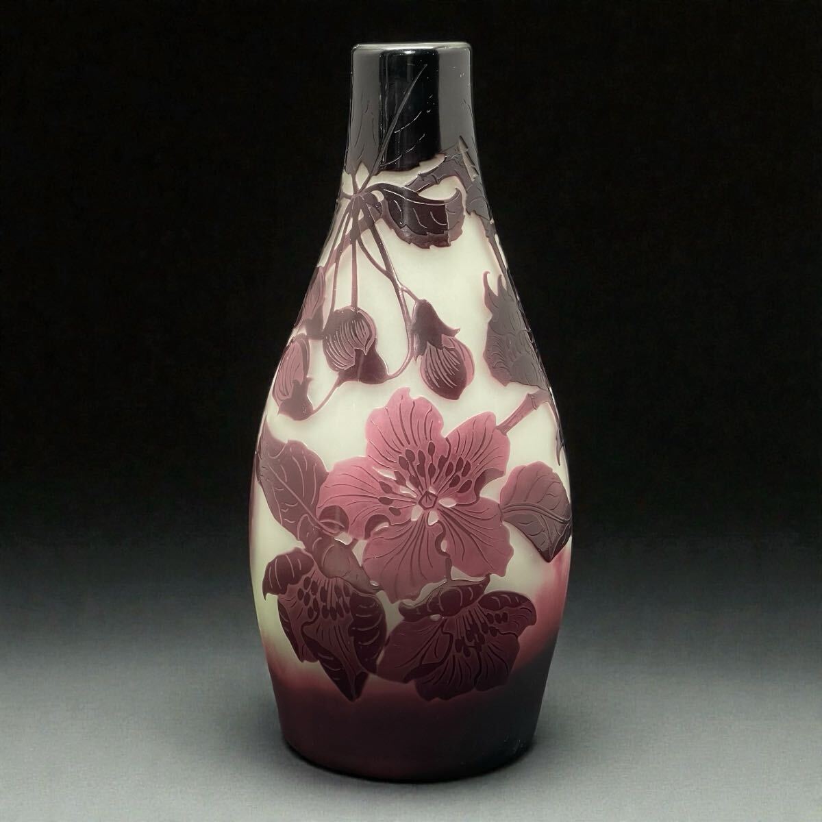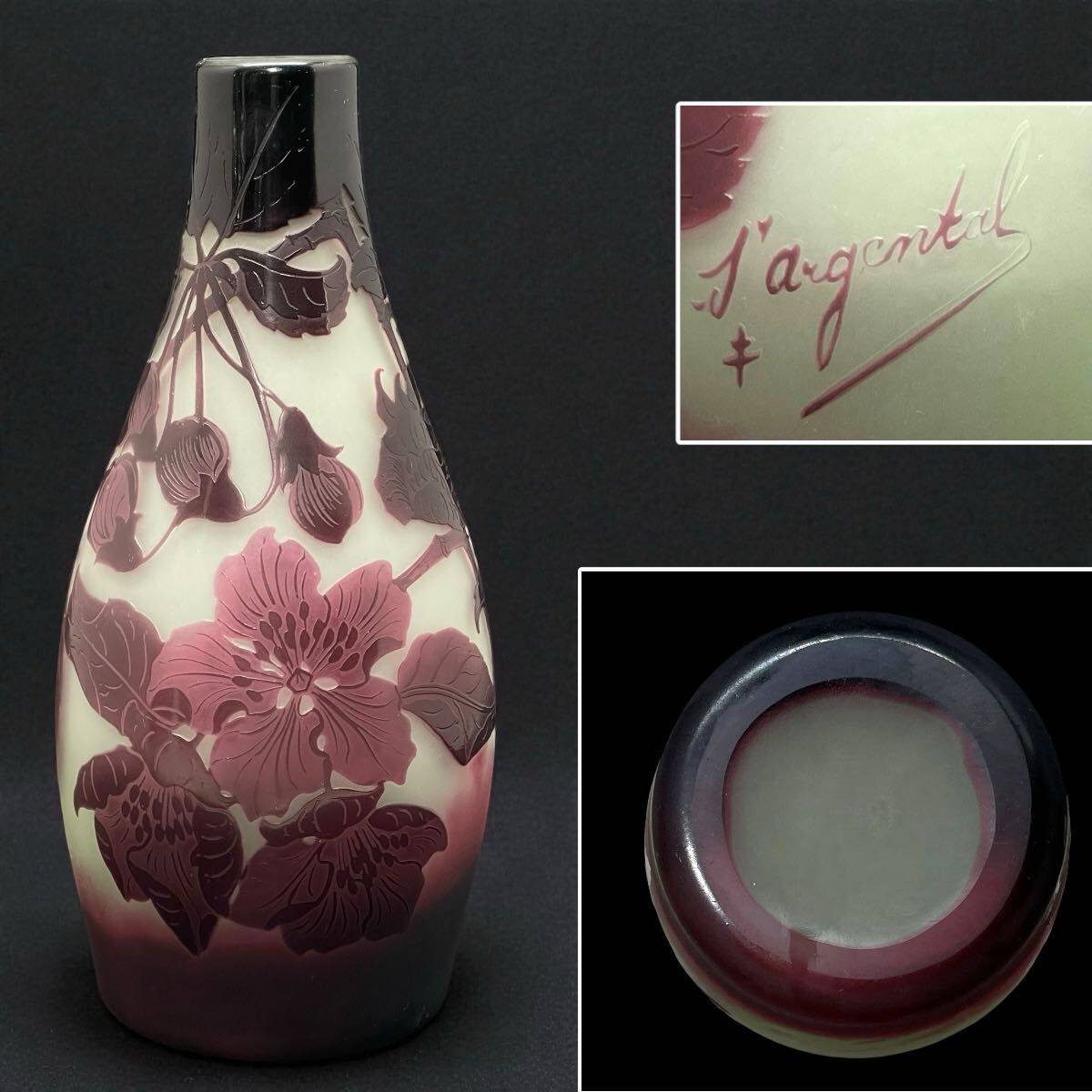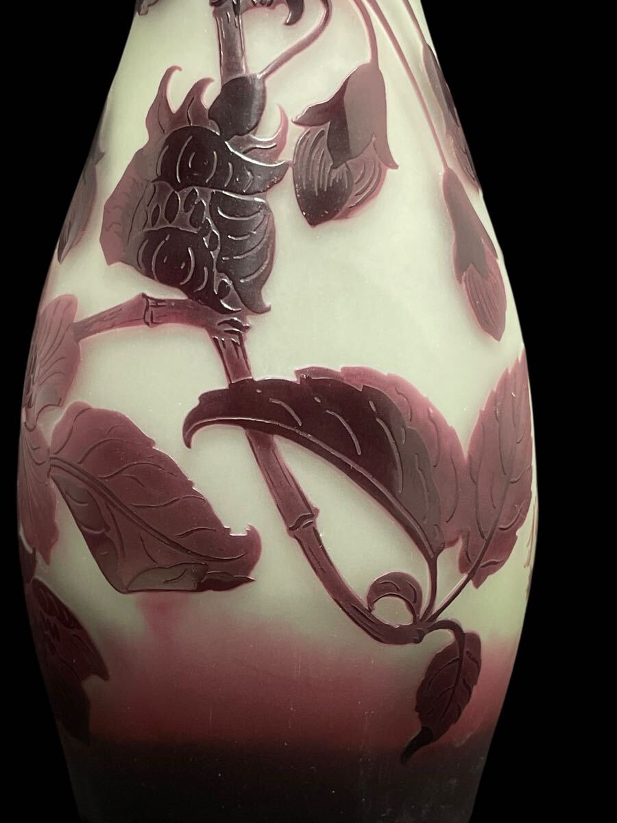 エミール・ガレの門徒 ポール・ニコラ(D'argental) 在銘 刻印 被せガラス 花文花器 西洋美術 希少 Paul Nicolas ガラス工芸 アンティーク