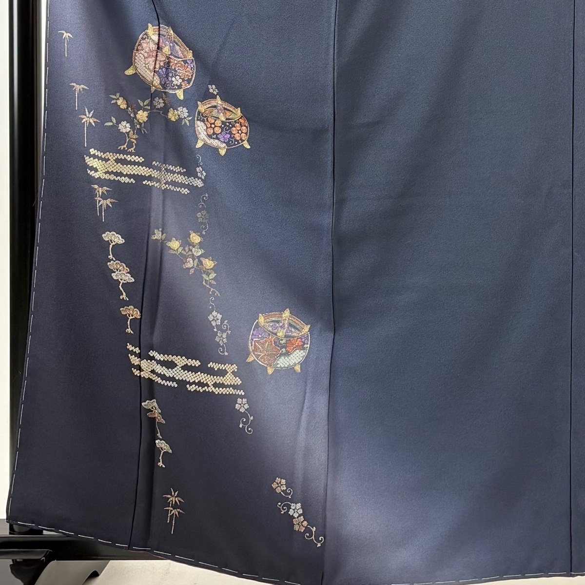 | 付下げ 美品 秀品 糸巻き 草花 金銀彩 ぼかし 紺色 袷 身丈164 裄丈65 M 正絹 【中古】 |