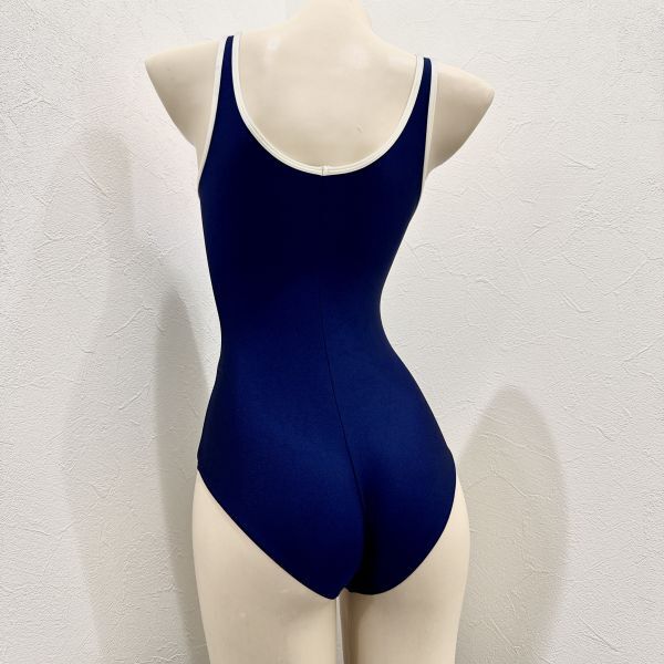 3【新古品未使用】プーマPUMA女子競泳水着160(Lサイズ程度)★光沢ネイビー濃紺ホワイト白パイピング★タグ付き★大きいサイズ男性も