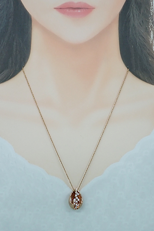 コメント立体的なドロップ型の中にテリの良いダイヤモンドが眩く輝く、エレガントなネックレスです。外側は上品な梨地、内側は鏡面となっており、奥行きを感じる作りで光と影のコントラストを生み出します。
