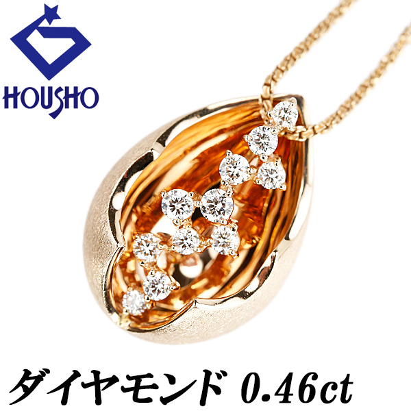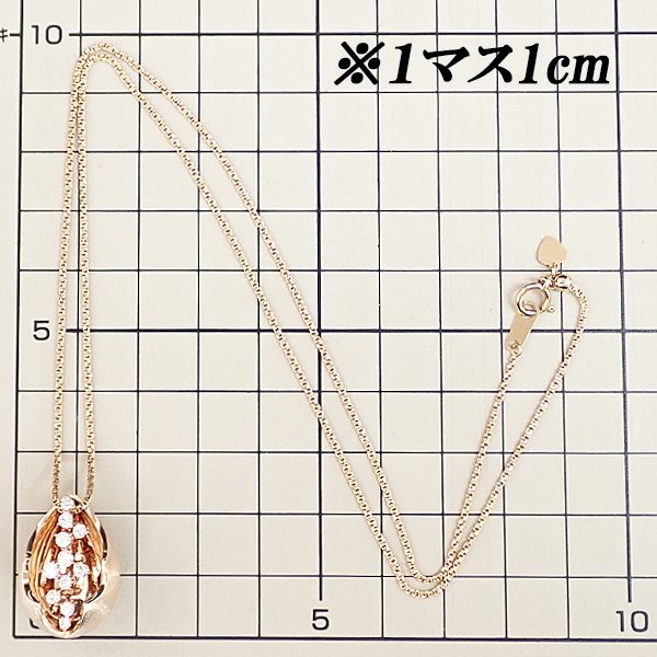 【セール開催中】ダイヤモンド ネックレス K18ピンクゴールド 卵 ドロップ 雫 しずく 涙 なみだ 梨地 マット ツヤ消し 中古 宝正 904256