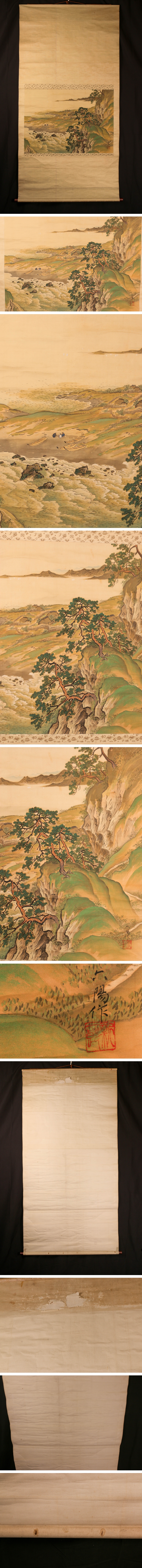 【SAG】阿部六陽 風景図 肉筆 絹本 掛軸 本物保証