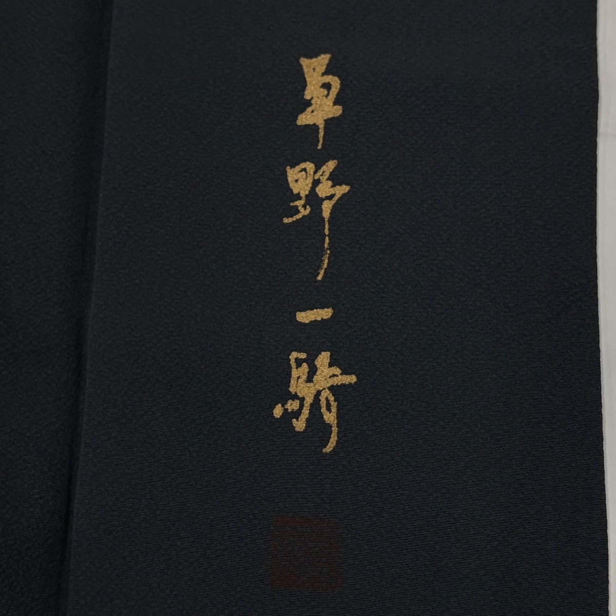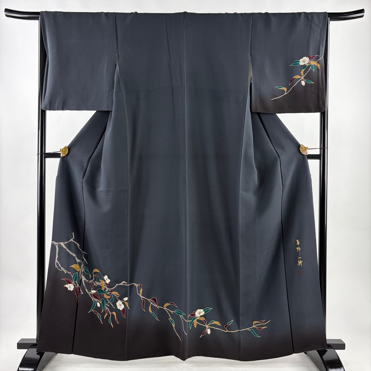 | 付下げ 名品 草野一騎 落款 枝花 金彩 ぼかし 墨色 袷 身丈162.5 裄丈66.5 M 正絹 【中古】 |