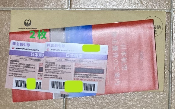 JAL 株主優待券、株主割引券、2027/5/31までにご搭乗×2枚です。