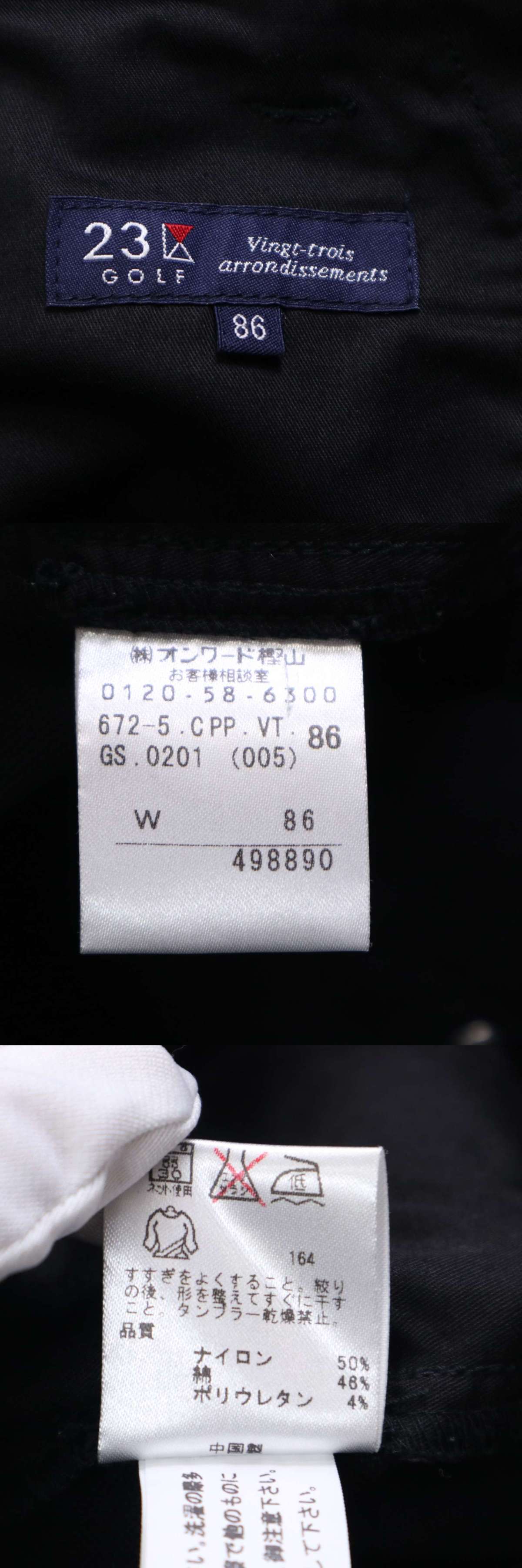 23区 golf 23区 ゴルフ 通年 ロゴ刺繍★ ストレッチ スラックス パンツ Sz.86 メンズ 黒