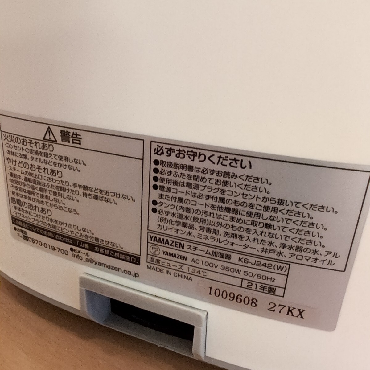 スチーム加湿器 山善 中古品  ホワイト KS-J242(W)