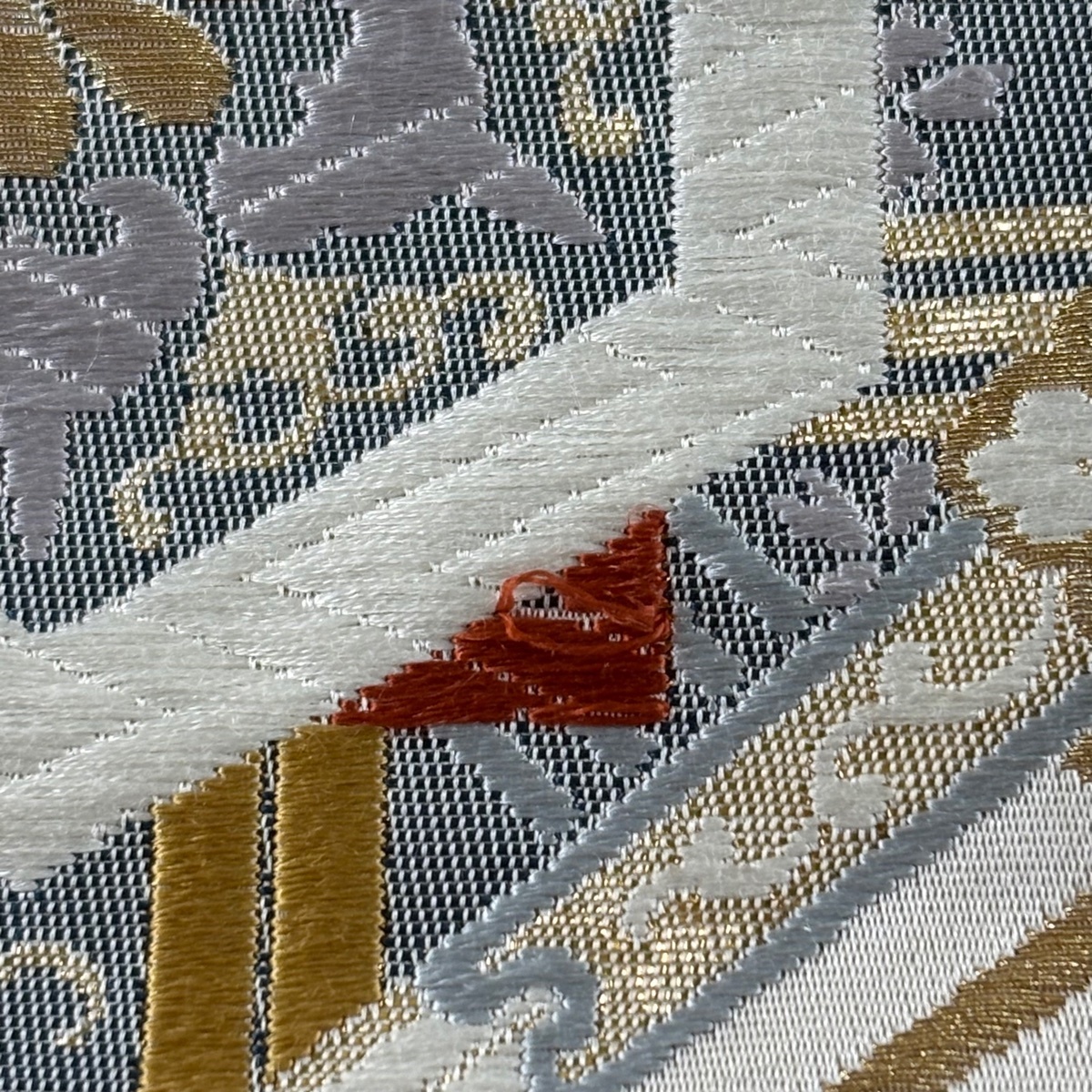 | おめでたい席に相応しい意匠の袋帯でございます。 格式高いお席にもお使いいただけますので、お見逃しのないようお願いいたします。 締め跡がございます。 中無地にシミ、前柄お太鼓間にほつれがございます。 裏地にシワがございます。 リユース品としては目立った染み傷なく、状態の良いお品でございます。 ※なお、厳しく商品の状態確認を行っておりますが、記載の汚れ以外にも見落とし箇所がある可能性がある旨ご了承いただけますと幸いです。 沢山の商品の中からご覧いただき誠にありがとうございます。 |