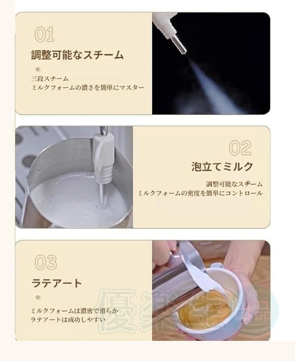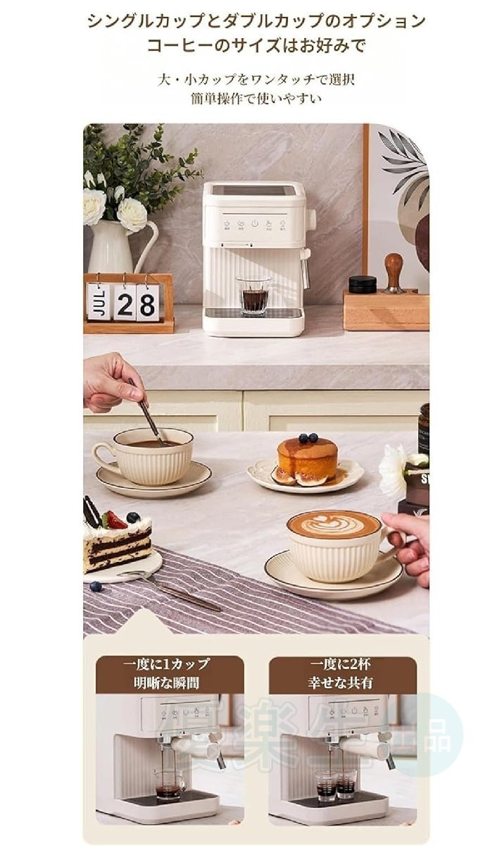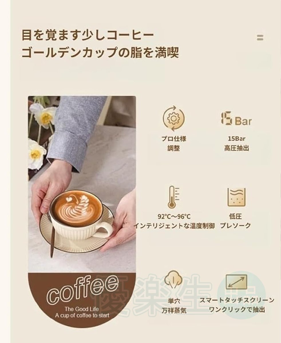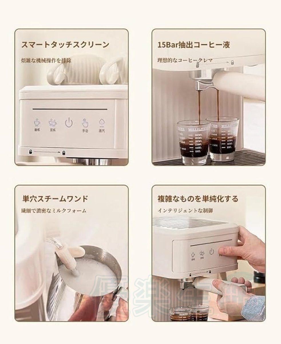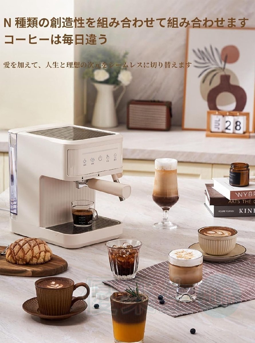 エスプレッソマシン 家庭用 コーヒーメーカー ミルク泡立て器 20bar圧力 カップ加熱機能 ミルクフォーム/ラテアート/スチーム 1800mlyhw108