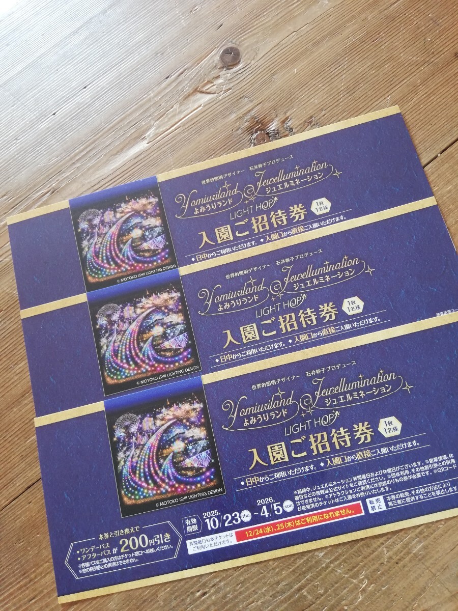よみうりランドジュエルミネーション入園ご招待券3枚セットです。