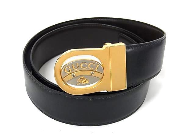 1円 ■美品■ GUCCI グッチ グッチプラス レザー リバーシブル ゴールド金具 ベルト レディース メンズ ブラック系×ブラウン系 GB2968