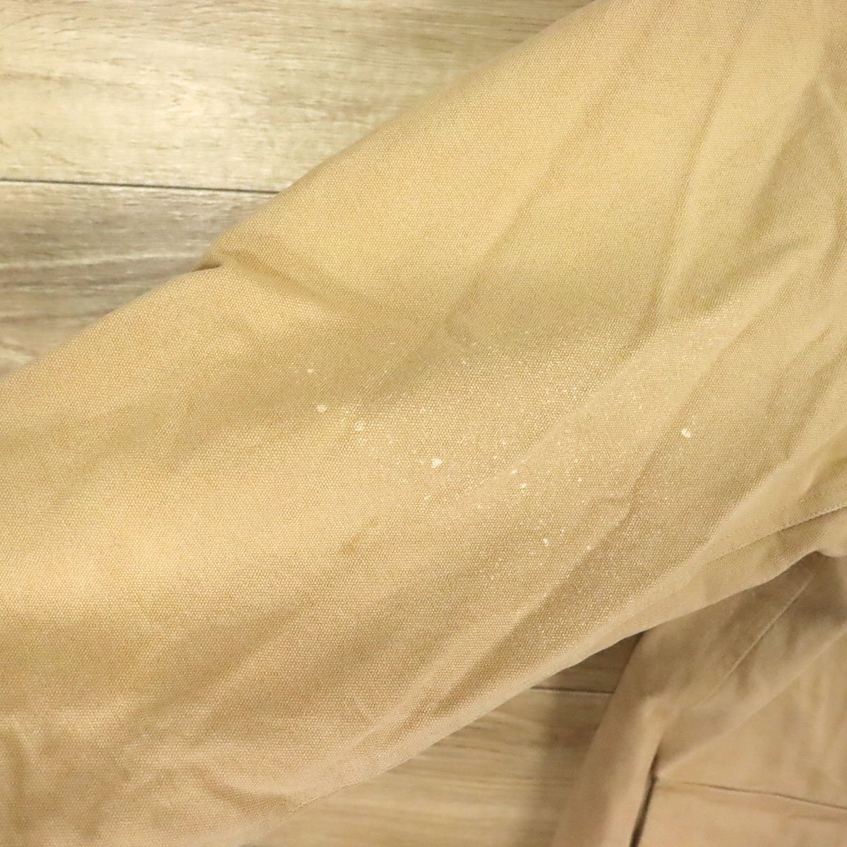 中古品です。使用感があります。袖とフロントに汚れ、袖先や襟やフロントなど全体の所々に擦れとアタリと薄汚れがあります。