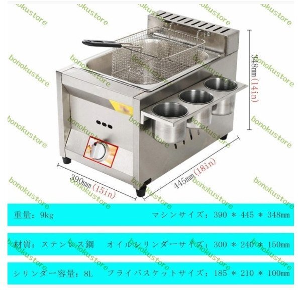 ガスフライヤー 1槽型 大容量8L ステンレス鋼 卓上フライヤー バスケット付き お掃除楽々 業務用フライヤー ミニフライヤー (A180)