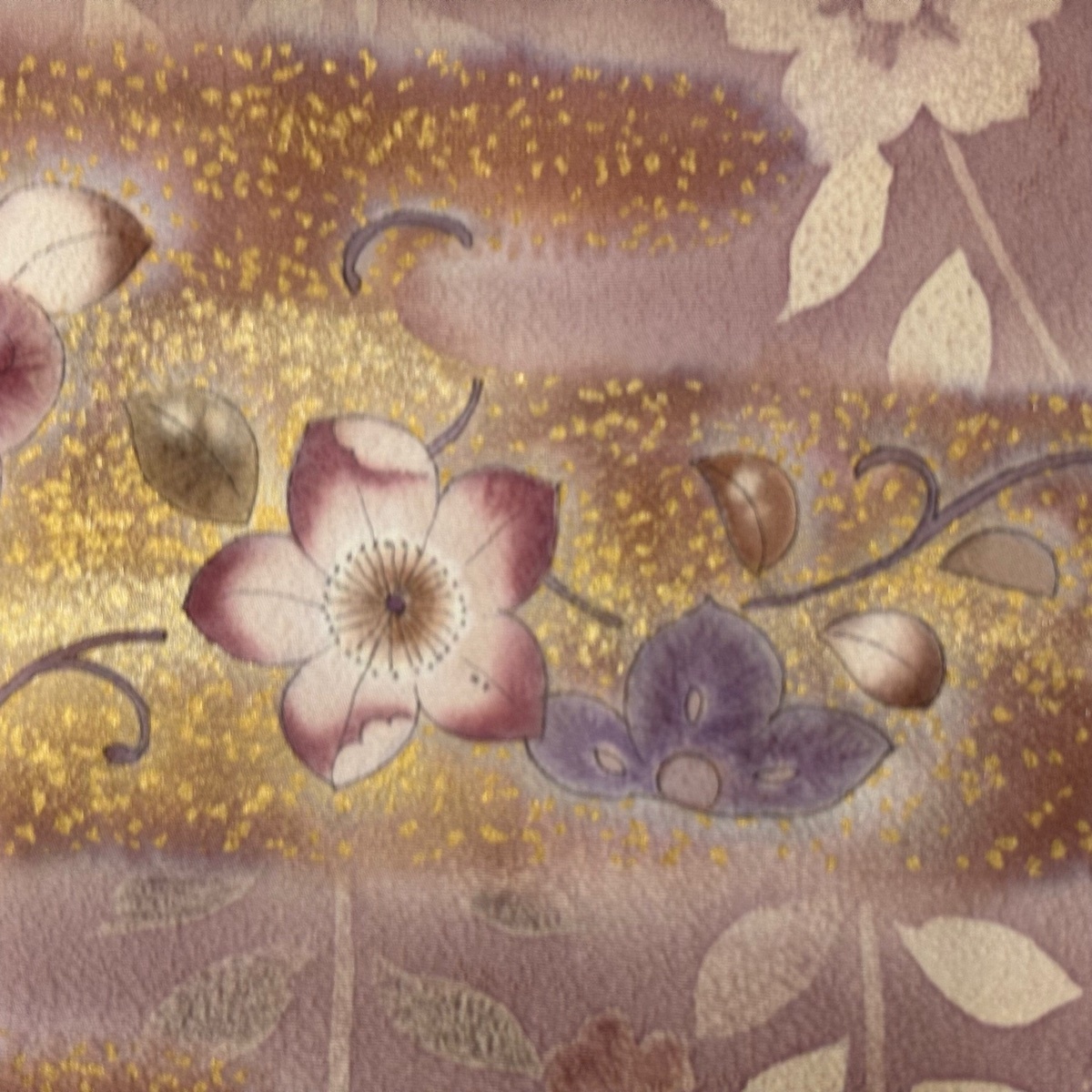 | 訪問着 秀品 草花 霞 金彩 ぼかし 灰紫 袷 身丈156 裄丈65 M 正絹 【中古】 |