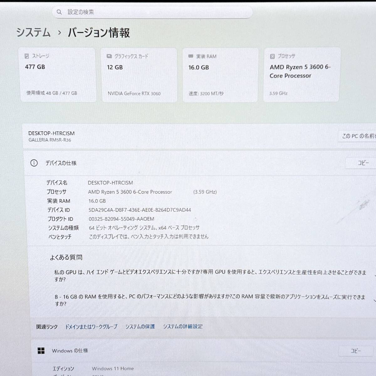 ガレリア AMD Ryzen 5 3600 メモリ 16GB