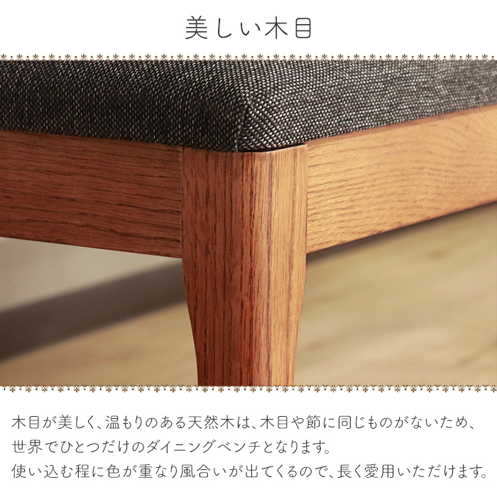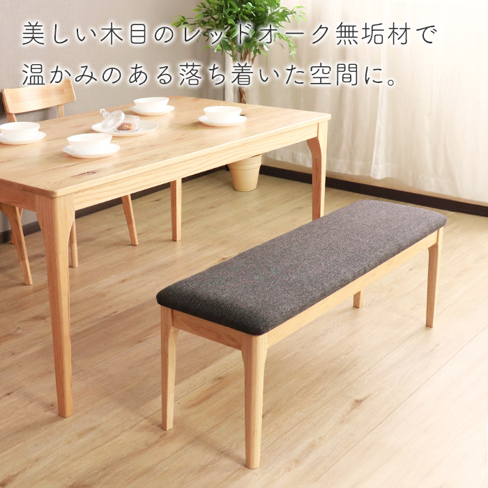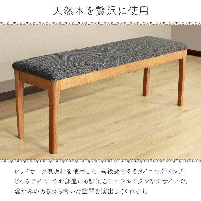 レッドオーク無垢材を使用した、モダンテイストなダイニングベンチ。