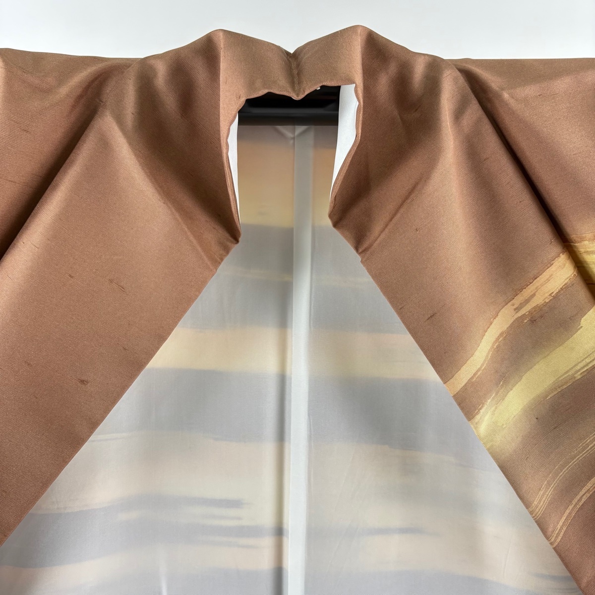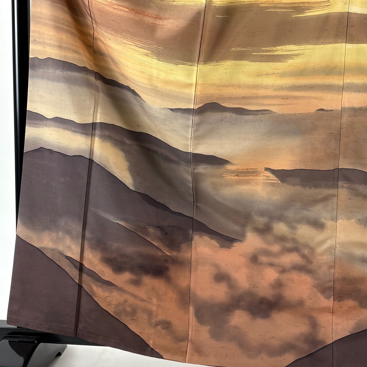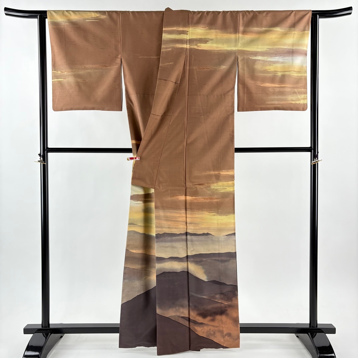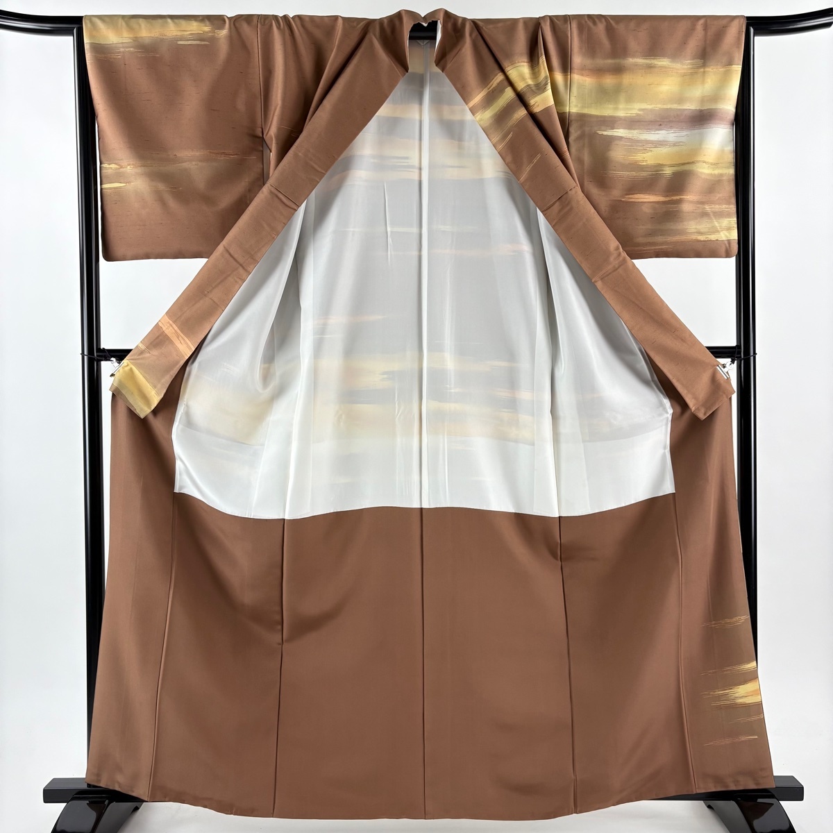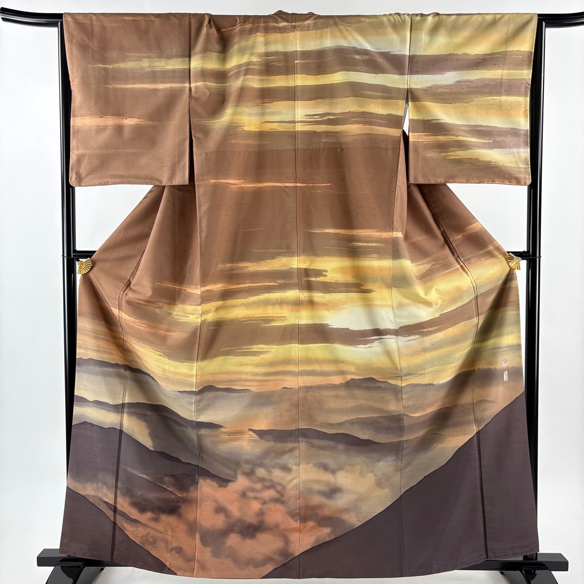 | 訪問着 美品 逸品 落款 牛首紬地 雲海 ぼかし 茶色 袷 身丈163 裄丈67 M 正絹 【中古】 |