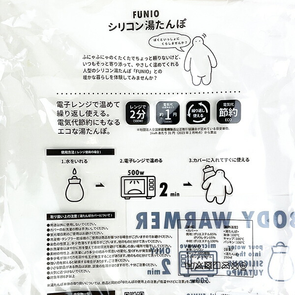 | 商品説明 | ふにゃふにゃのくたくたでちょっと頼りないけど、いつもそっと寄り添って、やさしく温めてくれる人型のシリコン湯たんぽです。「FUNIO」との暖かな暮らしを体験してみませんか?電子レンジで2分温めるだけ!繰り返し使えてエコな湯たんぽです☆【セット内容:シリコン湯たんぽ、フニオカバー】【容量:250ml(湯たんぽ)】 |