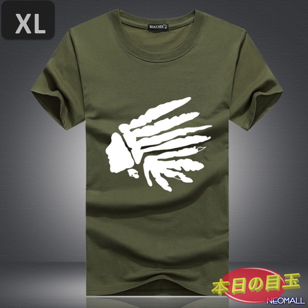 本日のお買得 ☆ 丸首 半袖 Tシャツ【462】 グリーン XLサイズ トップス シャツ シンプル イラスト デザイン 春夏