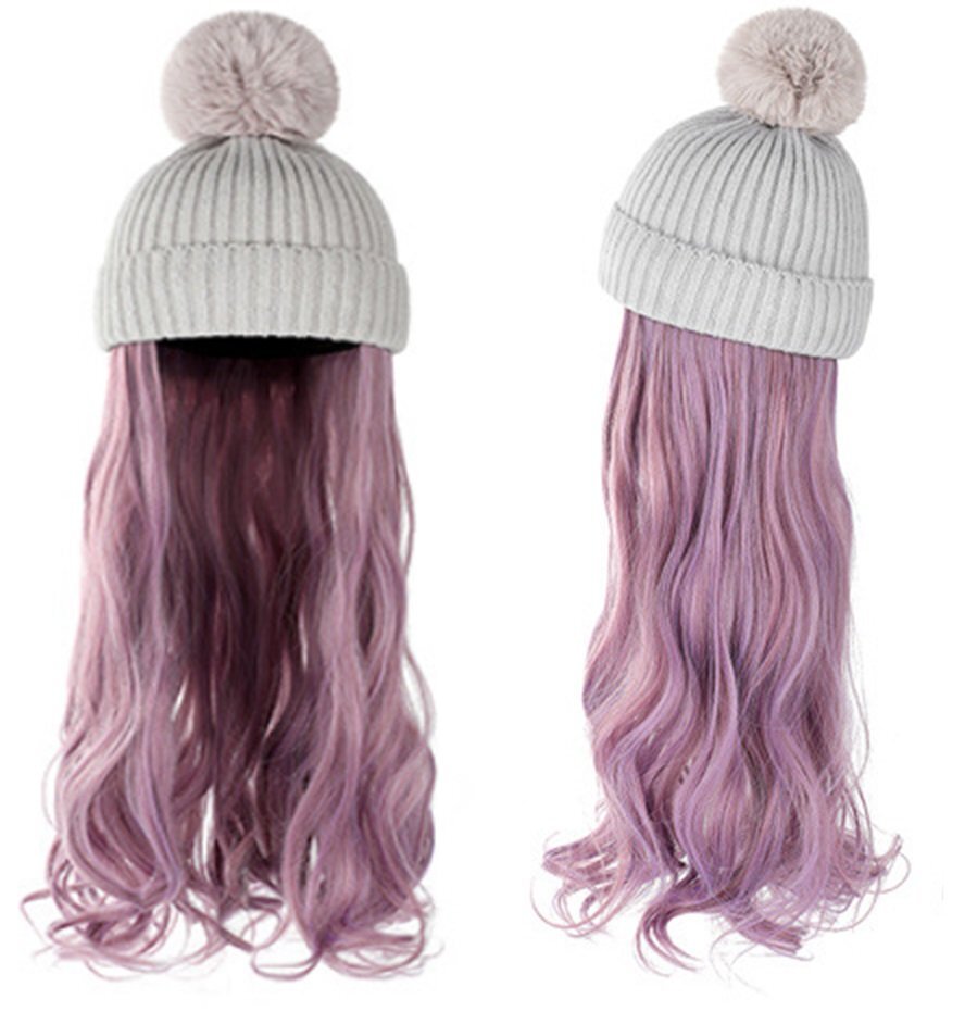 ウィッグ付きニット帽 ニット帽/グレー ウィッグカラー/H ロングヘアー カール イメチェン 髪色チェンジ コスプレ n467