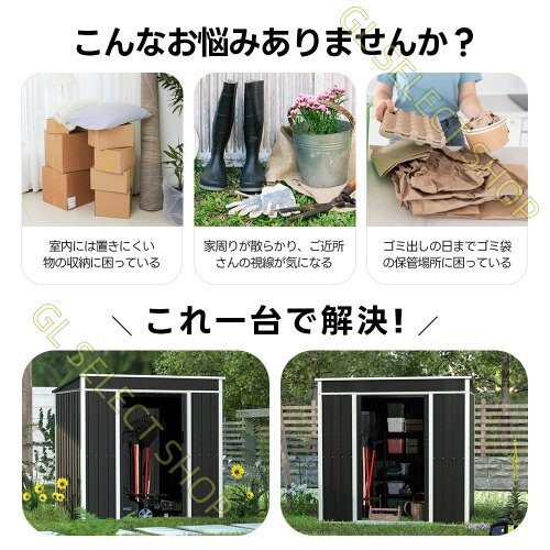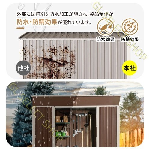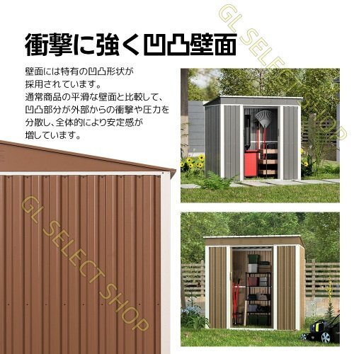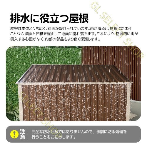 雨が降ると、屋根にたまることなく、斜面と凹槽を経由して地面に流れ落ちます。これにより、物置内に雨が侵入する心配がなく、内部の部品をより良く保護します。