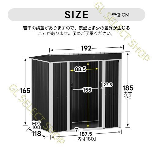 物置 屋外 スチール 倉庫 戸外収納庫 幅180*奥行き120*高185 物置き おしゃれ 大型 収納庫 屋外物置 防さび ベランダ 防水 ドア 引戸