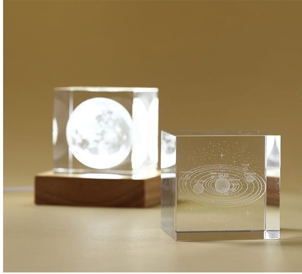 オシャレな置き物 クリスタルライト 4cm 銀河系 オブジェ 室内 雑貨 パターン 立方体 透明 上品 結婚記念 卒業祝い 子供