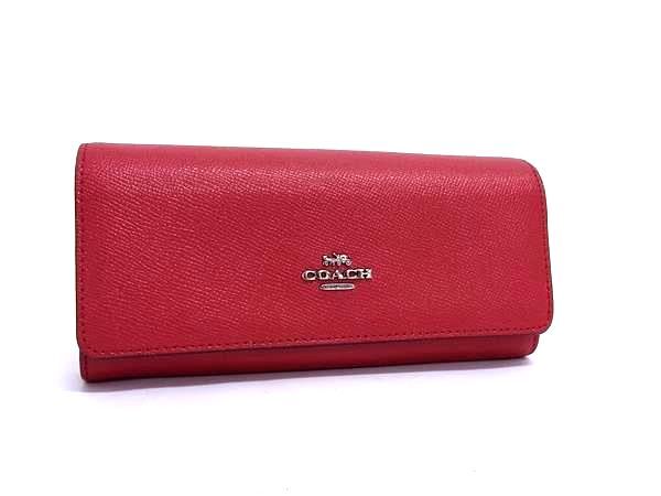 ■美品■ COACH コーチ 58307 レザー 二つ折り 長財布 ウォレット 札入れ 小銭入れ レディース レッド系 DJ4018